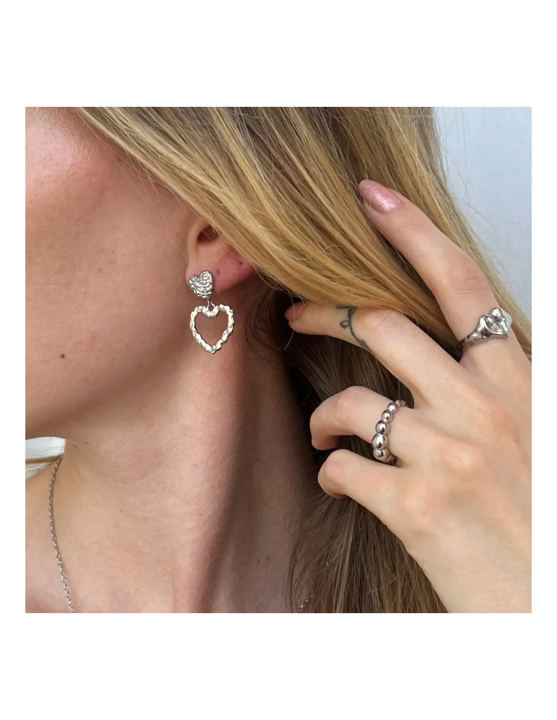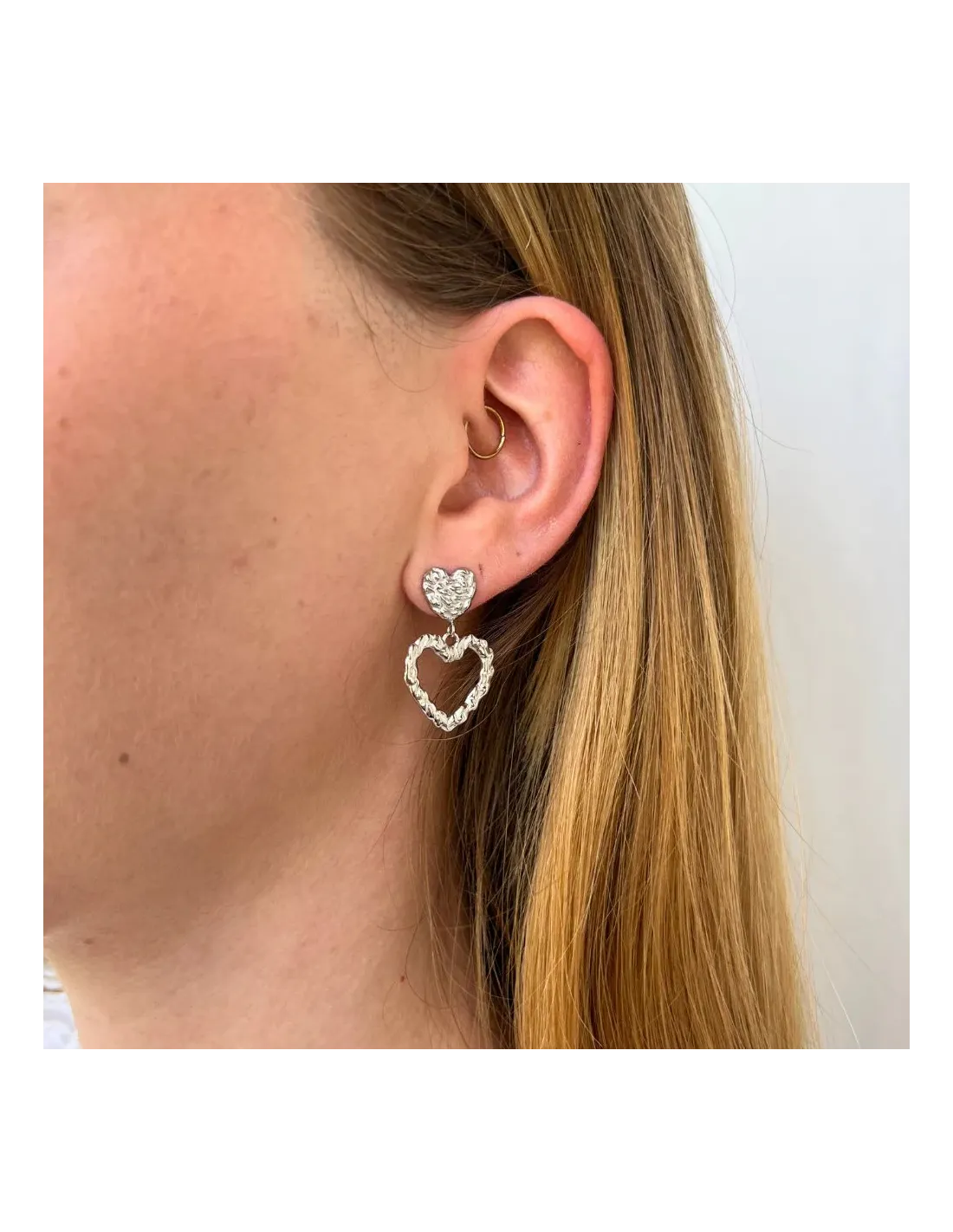 Hjerte øreringe med karakter! Den teksturerede overflade giver et moderne twist på det klassiske symbol. Ideelle til dig, der elsker sølv øreringe med personlighed – og gerne vil skille dig lidt ud.