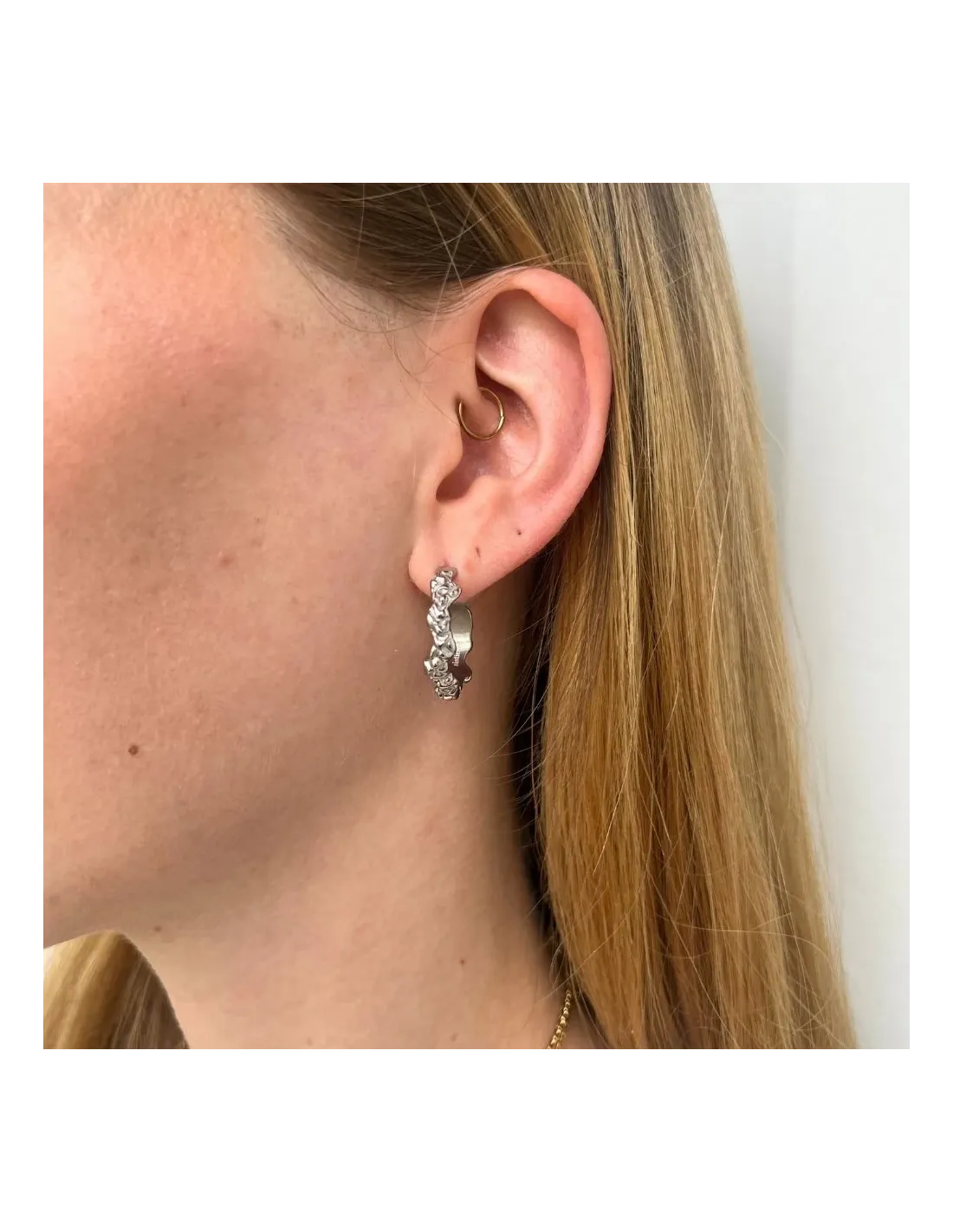 Cool og rå creoler, som kan sammensættes med alle vores andre creoler og øreringe. Leg med sammensætningen, hvis du har flere huller i øret.