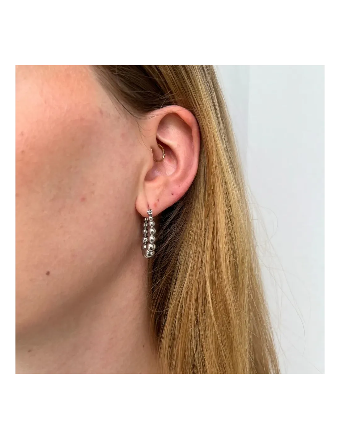 Disse Bubble creoler fra Sistie er fremstillet i rustfrit stål og designet med en række blankpolerede kugler, der gradvist varierer i størrelse. Det giver øreringene et moderne og iøjnefaldende udtryk, som både passer til hverdag og fest.