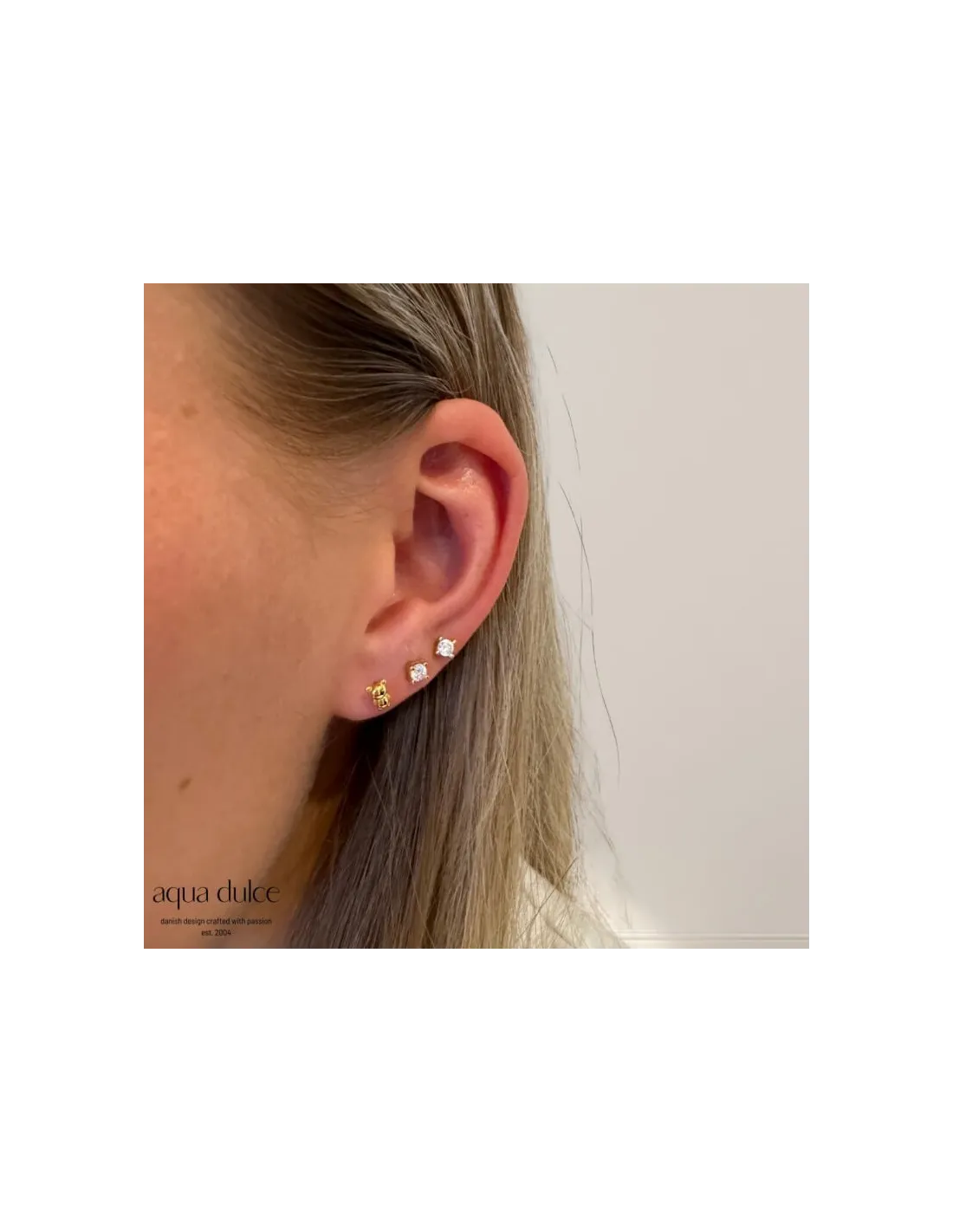 Ørestikkerne er fremstillet i sterlingsølv med forgyldning og har et detaljeret, genkendeligt bjørnedesign, hvor både hoved, ører, krop og ben er tydeligt formet. Den faste stift sikrer, at øreringene sidder stabilt i øret. Tiny Teddy øreringene fra Aqua Dulce passer til dig, der søger små guldfarvede ørestikker med figurdesign, og som ønsker et smykke i ægte sølv med overfladebehandling.