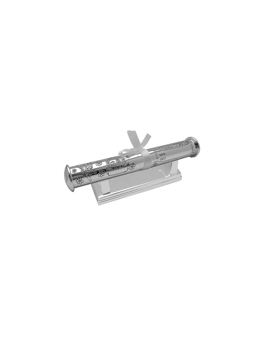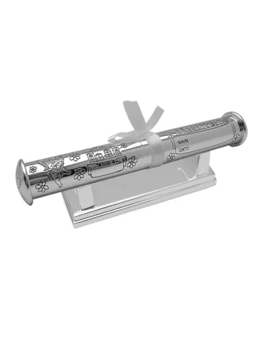 Enkelt og stilfuldt forkromet dåbsrør med fod til opbevaring af dåbsattesten. Røret er dekoreret med dåbsmotiver, en skytsengel og små blomster. I den spirituelle verden er skytsenglens rolle altid at være ved vores side og vogte over os gennem livet. Røret benyttes typisk til opbevaring af barnets dåbsattest, men udover dåbsattesten, kan dåbsrøret også indeholde andre personlige dokumenter, som f.eks. breve og lykønskninger i forbindelse med dåben. Brugen af et dåbsrør har igennem mange årtier, været en kendt tradition i forbindelse med dåben, og er oplagt som en unik og personlig dåbsgave. Med et dåbsrør undgår du at dåbsattesten bliver krøllet og bukket, så det kan bevares i mange år.