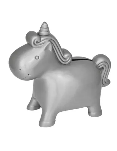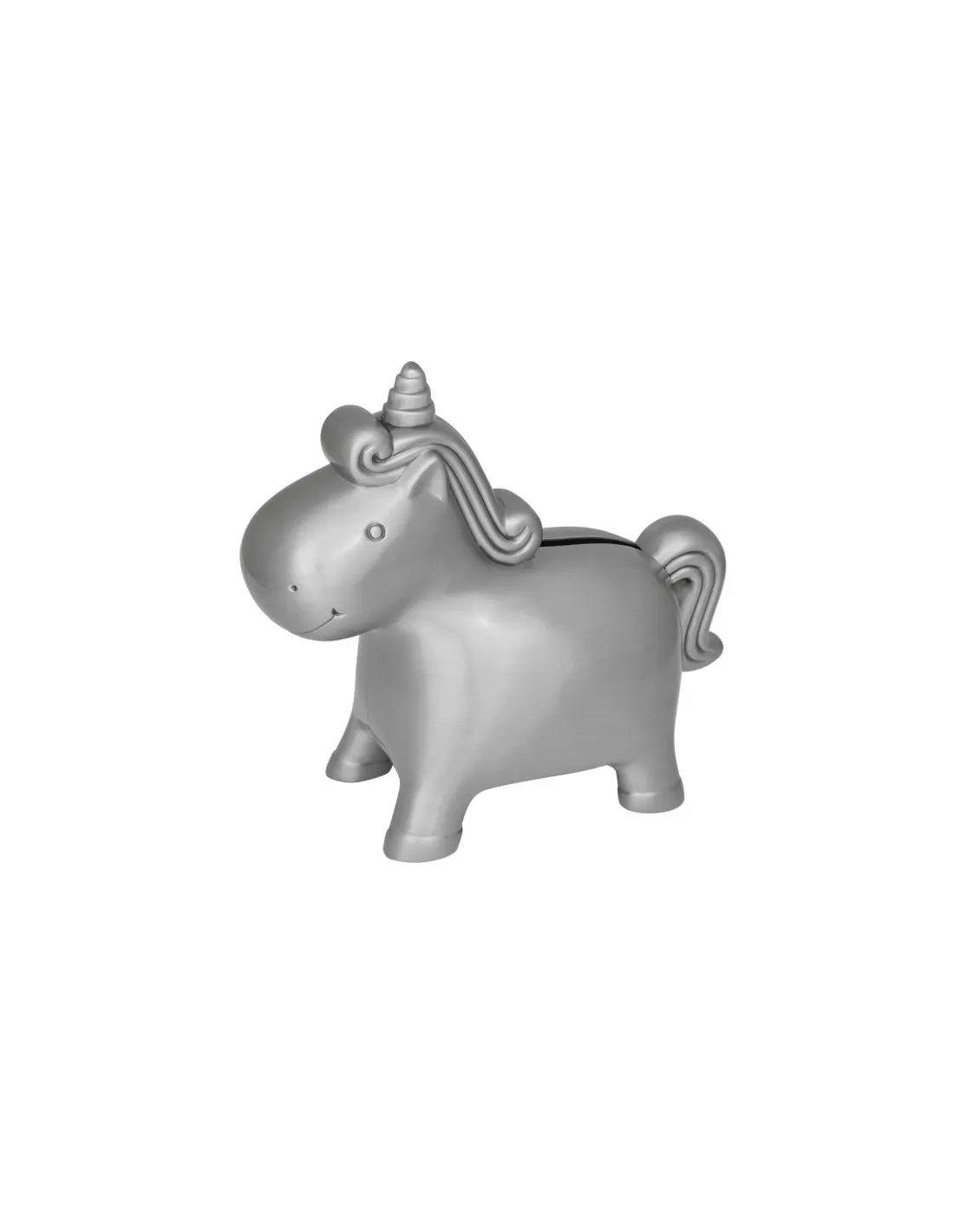 Gør opsparing sjov med denne charmerende sparebøsse formet som en enhjørning. Fremstillet i fortinnet materiale med mat finish, er den både dekorativ og funktionel – perfekt som personlig gave til barnedåb eller fødselsdag.