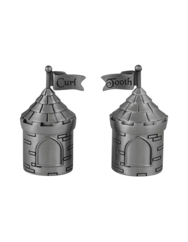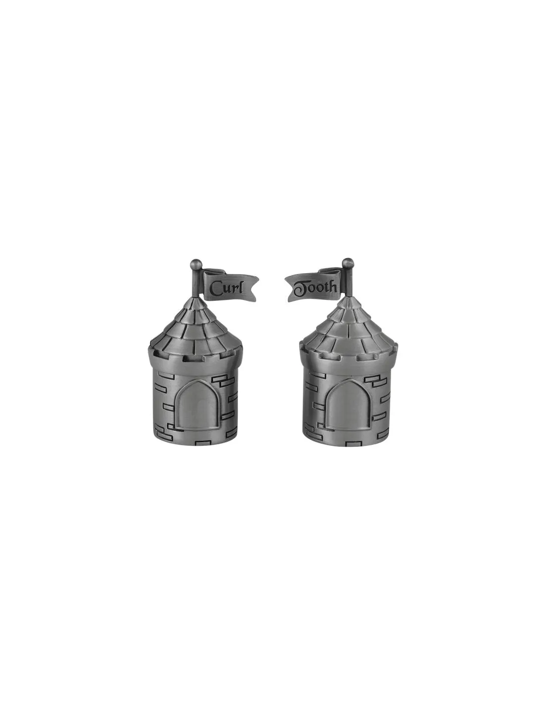 Gem barnets første minde på eventyrlig vis med dette sæt af to små æsker i form af slotstårne. Den ene med flaget “Tooth” og den anden “Curl” – perfekt til opbevaring af barnets første tand og første hårlok. De er fremstillet i børnevenligt fortinnet metal med flotte detaljer, inspireret af klassiske eventyrslotte.