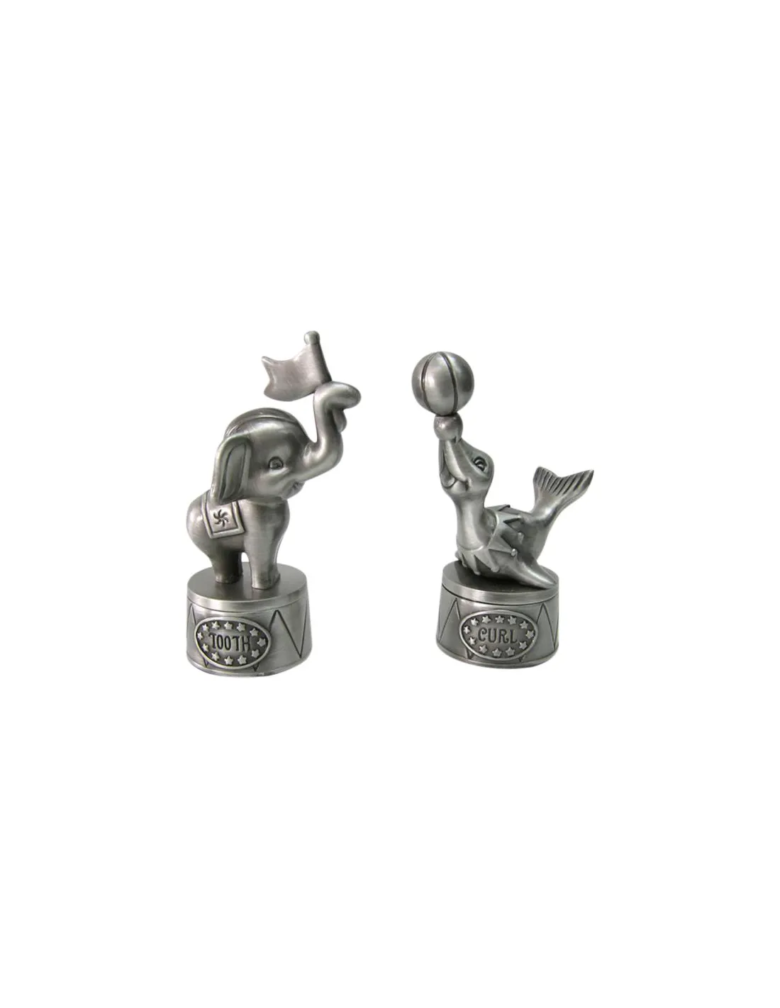 Gør barnets første minder endnu mere særlige med dette søde sæt af fortinnede æsker formet som cirkusdyr – en elefant og en søløve. Æsken med elefanten er mærket “Tooth” og er beregnet til barnets første tand, mens søløven bærer bold og teksten “Curl” til opbevaring af første hårlok.