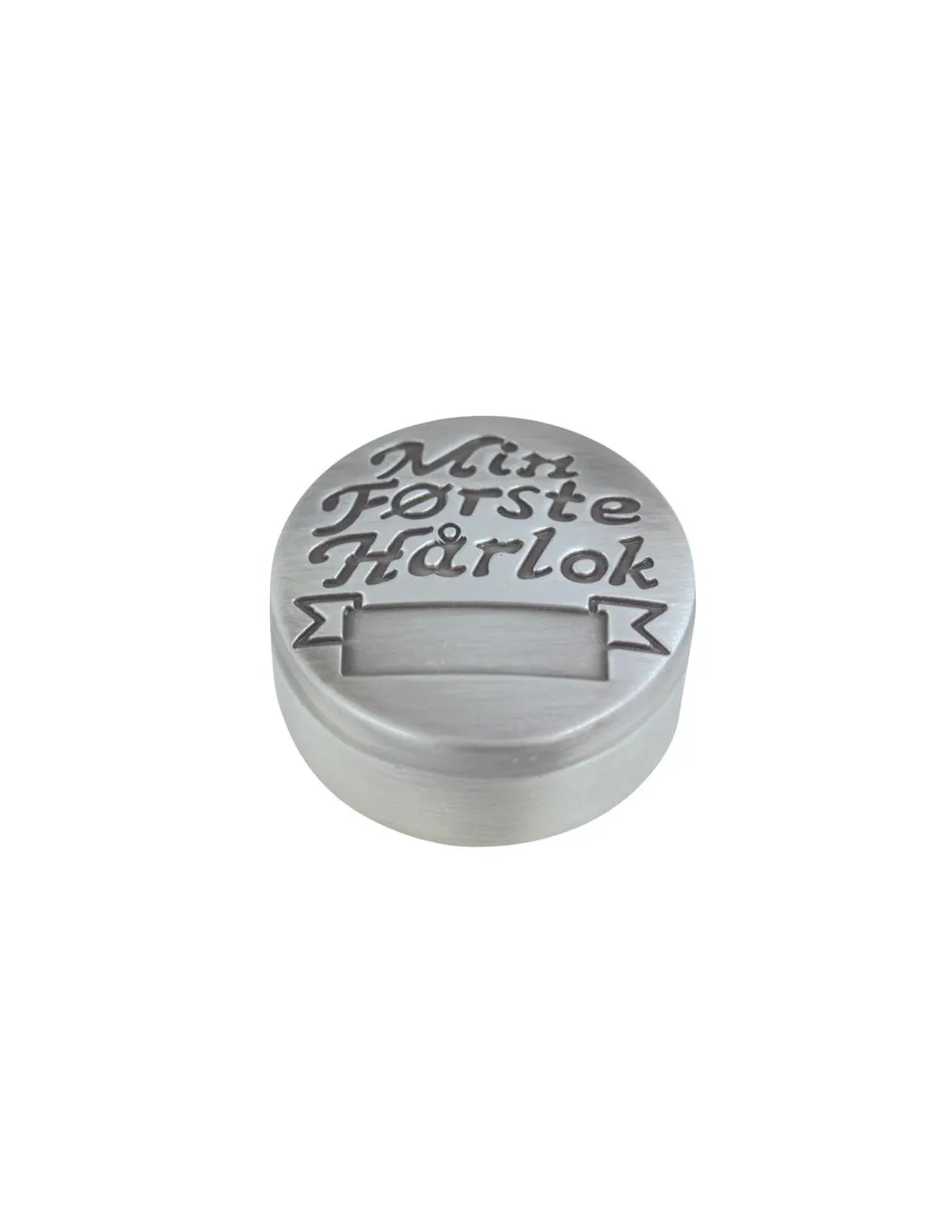 Gem et af barnets første minder i denne klassiske æske i fortinnet metal med teksten “Min Første Hårlok” indgraveret i låget. Den lille båndillustration giver mulighed for personlig gravering med navn eller dato, hvilket gør den til en helt særlig gave til barnets første år.