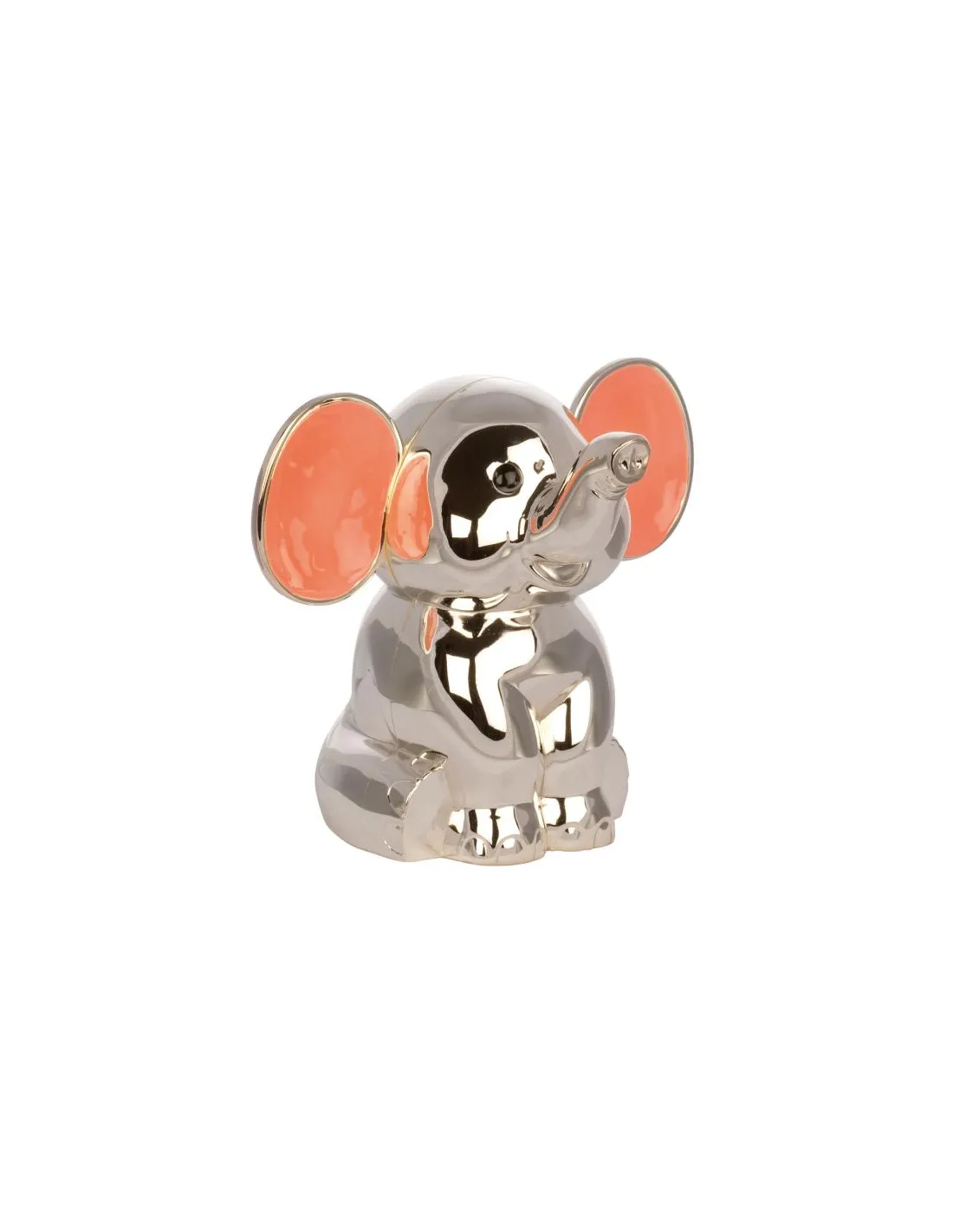 En rigtig elegant og sød forkromet sparebøsse, formet som en elefant, med fine lyserøde detaljer ved elefantens ører, der giver sparegrisen et ekstra touch. Uanset om du er på udkig efter en dåbsgave til den lille dreng eller pige, er et af de populære valg uden tvivl en sparebøsse, der altid gør lykke ved gavebordet til barnedåben. Det er en meget traditionel gave, og samtidig det oplagte sted at gemme pengegaver. Sparebøssen vil pynte på børneværelset, og er en sjov og lærerig måde for barnet at spare penge sammen på. Allerede mens barnet er helt lille bliver barnet bevidst om, hvad en opsparing egentligt er, og det får mulighed for at se og mærke pengene fysisk mellem de små hænder. En lille huskeregel, er at man altid skal putte et par småmønter i sparebøssen, inden gaven gives, for det menes at bringe lykke.