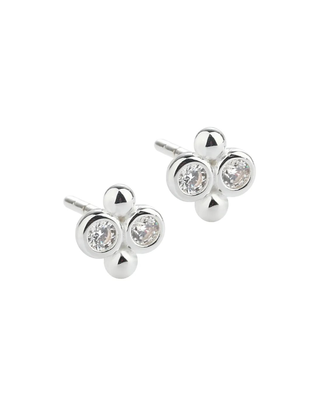 Ørestikker i sterling sølv med små kugler & klare zirkonia. 6*8 mm.