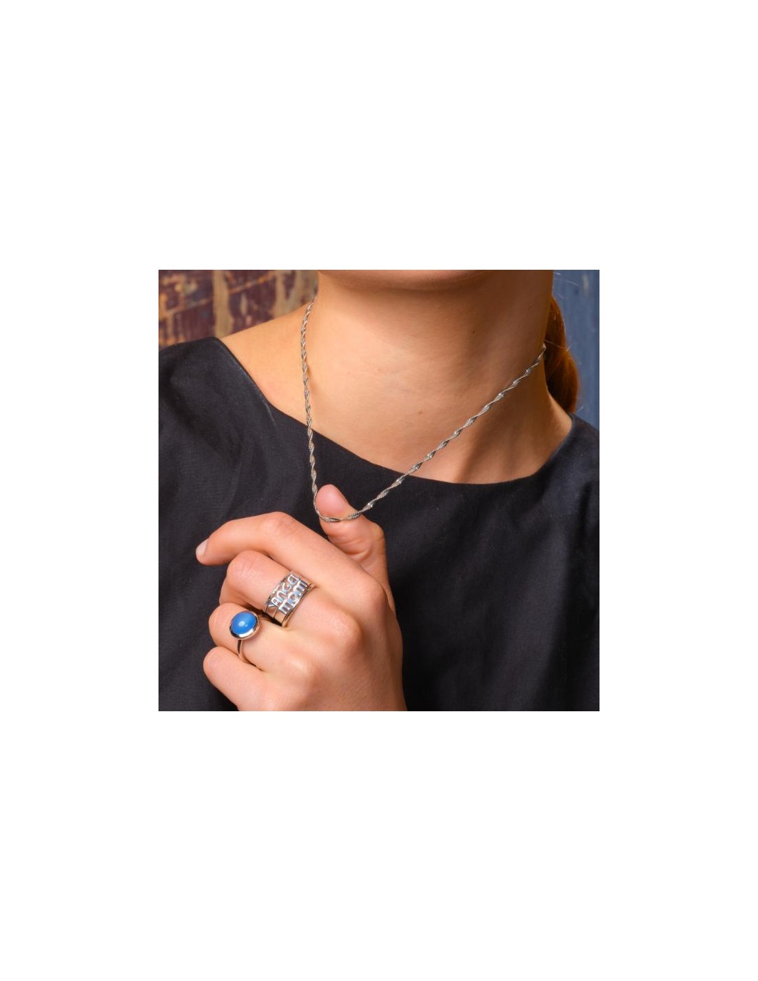 Den snoede halskæde i rhodineret sølv kan både bruges til hverdag og til fest.