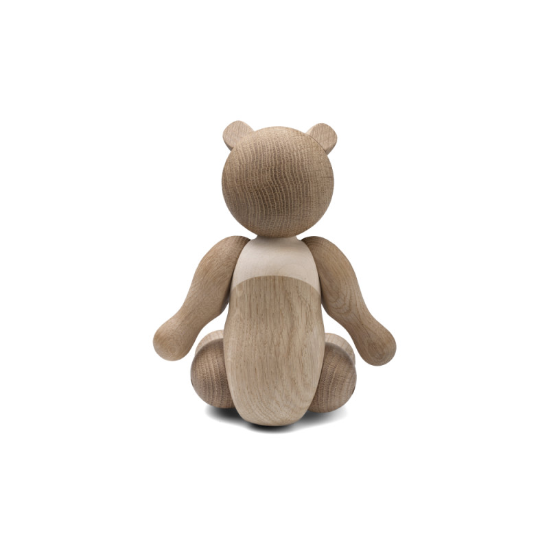 Kay Bojesen bjørn i størrelse mellem. Bjørnen er fremstillet i ubehandlet eg og ahorn.
