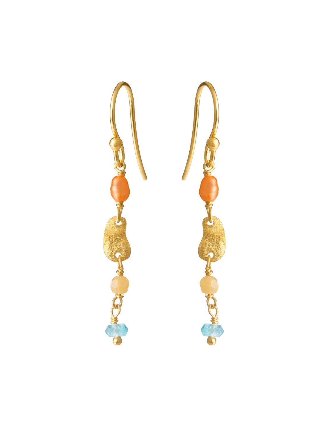 Forside SUSANNE FRIIS BJØRNER | Ørebøjle forgyldt med apatit, iolit, peridot, farvet... SUSANNE FRIIS BJØRNER 5679-2-601 385,00 kr. Ørering (bøjle), forgyldt sølv, amorf mellemled, apatit, iolit, peridot, farvet ferskvandsperle ca. 4 cm Læg i indkøbskurv