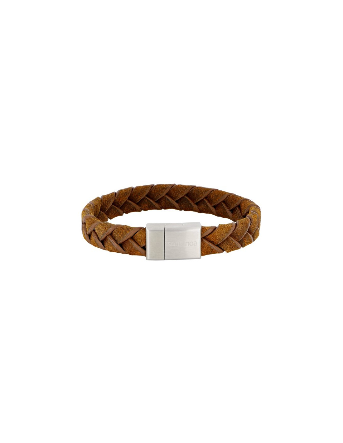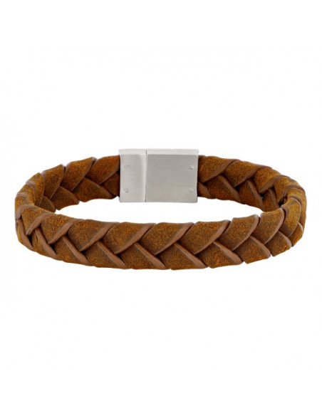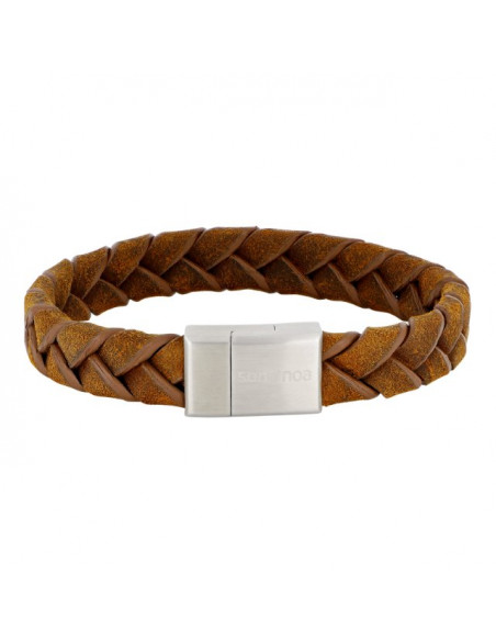Dette trendy armbånd i brunt kalvelæder fungerer godt til både jakkesættet og det mere casual outfit. Låsen i stål udstråler maskulinitet og står som god kontrast til det flettede kalvelæder.