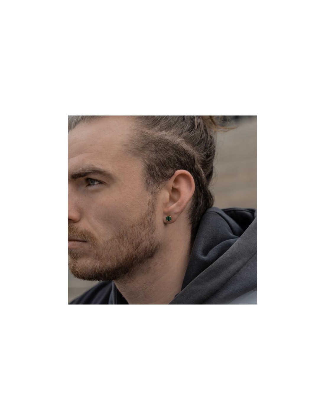 Trendy og edgy ørering med den flotte grønne malakit sten. Stenen er en stærk energisten, og vil hjælpe den, der bærer den, til bedre at håndtere negative følelser såsom angst, afmagt og vrede.