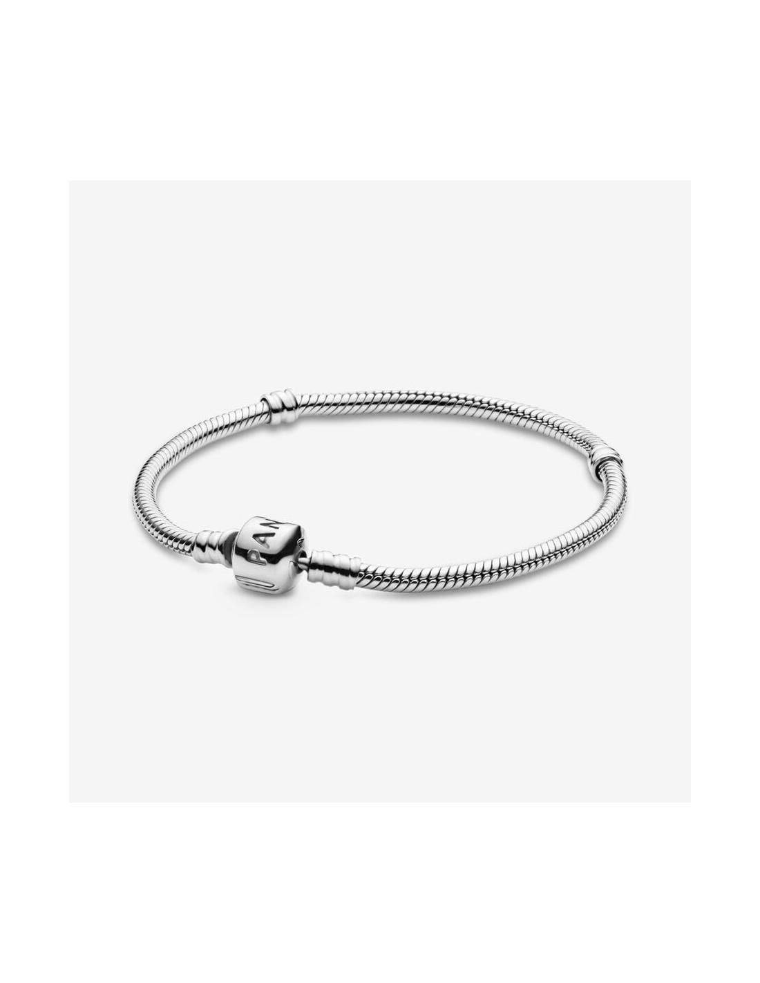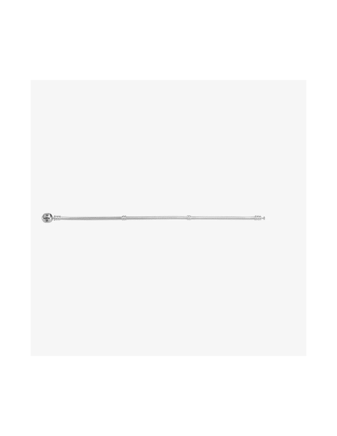 Vores populære charmarmbånd er det perfekte grundlag til din Pandora samling. Dette snake chain armbånd er fremstillet i elegant sterlingsølv og har Pandoras ikoniske skruelås, der sikrer dine charms samt et innovativt trådsystem, der gør det nemmere at sætte charms på dit armbånd. Brug et par klemmeled til at inddele armbåndet i tre dele, og vælg så dine yndlings Pandora charms og skab din helt egen stil.