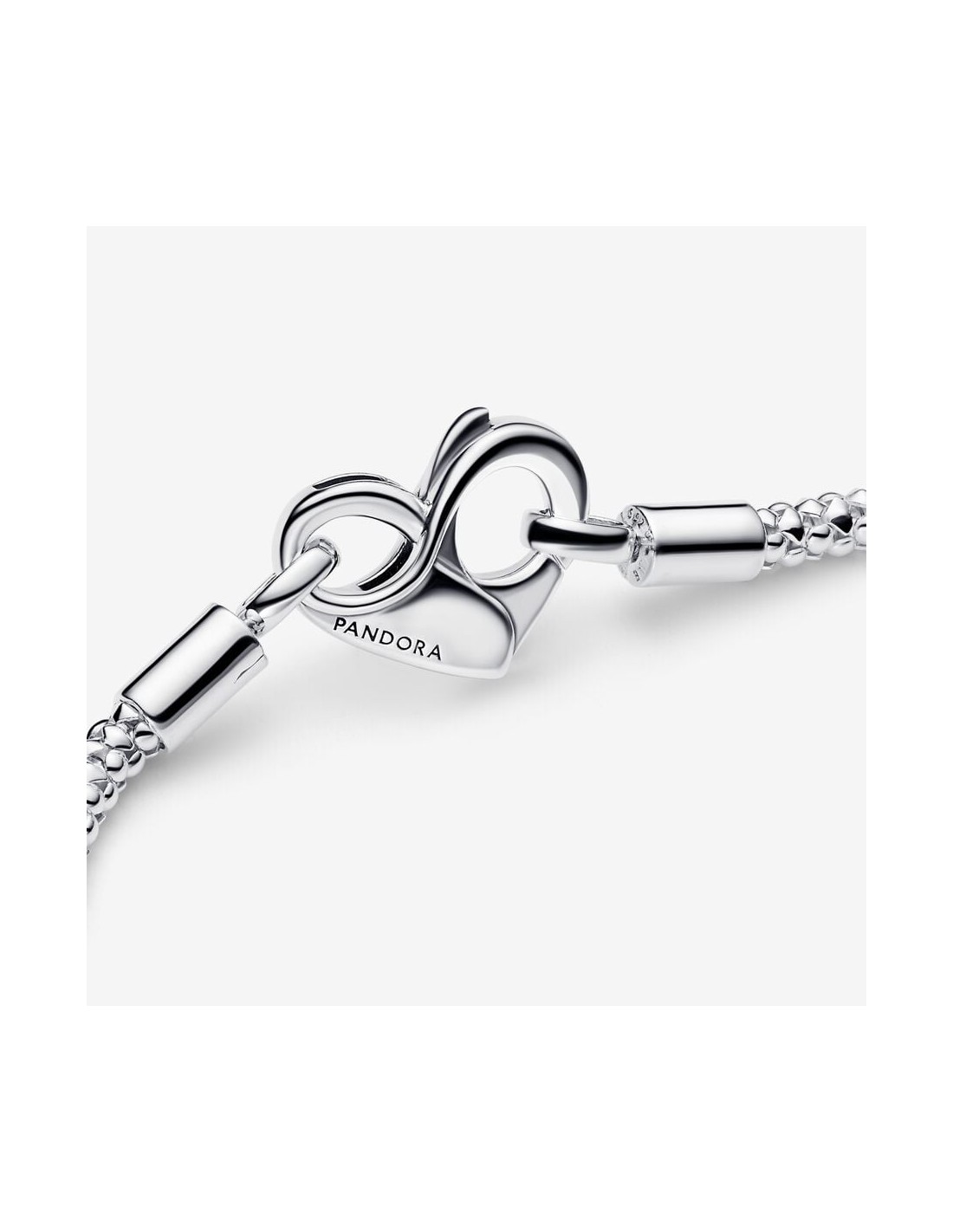 Opdatér din smykkesamling med de nye kædearmbånd fra Pandora Moments. Armbåndet er håndforarbejdet i sterlingsølv med en fleksibel kæde og hjertelås, der kan åbnes, med indvendigt uendelighedstegn. Bemærk: Kan styles med op til 14-18 charms med eller uden vedhæng i de tre sektioner, der er adskilt af gevindstykkerne.