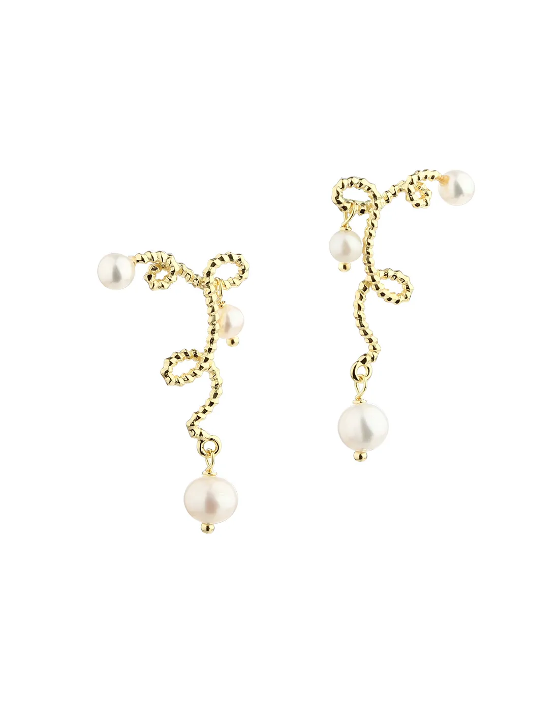 Ørestik i forgyldt sterling sølv med krølle & hvide ferskvandsperler.