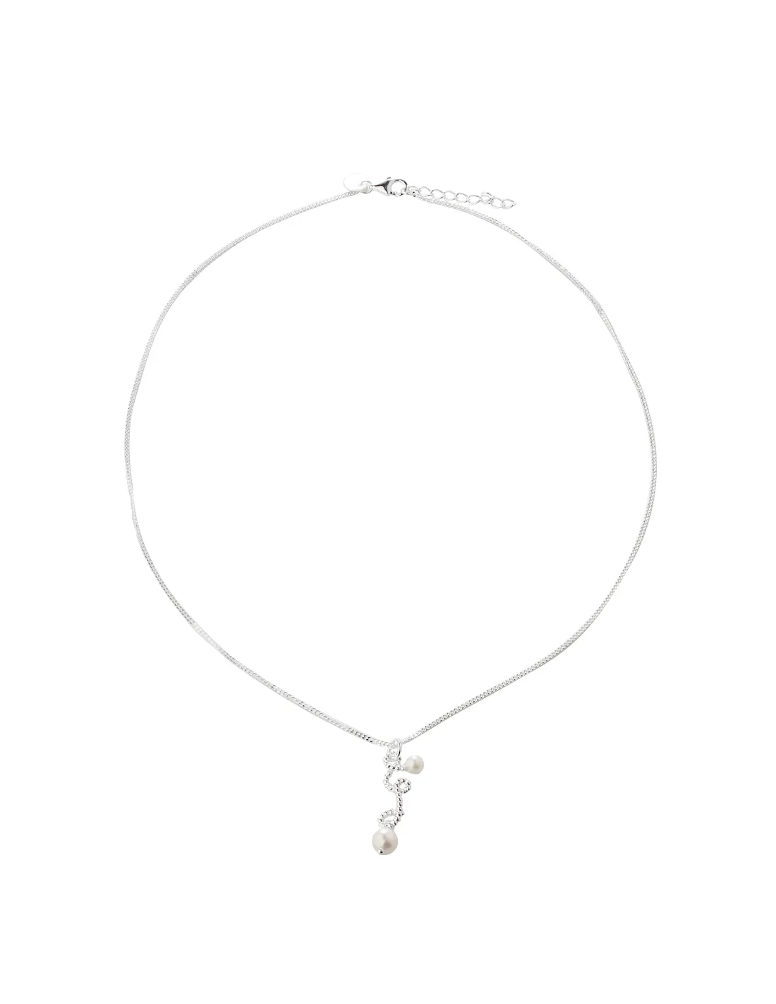 Halskæde i sterling sølv med krølle & hvide ferskvandsperler.