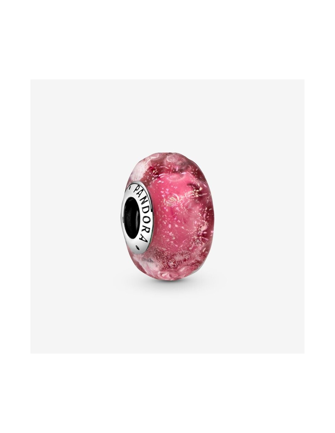 Det farvestrålende og sofistikerede lyserøde Muranoglascharm kan pifte ethvert look op. Lad dette lyserøde Muranoglascharm, der er fyldt med glitter belagt med en bølget glasoverflade, forvandle dit look fra noget ordinært til noget ekstraordinært. Dette charm er en smule mindre end vores traditionelle Muranocharms og passer perfekt til din stil. Hvert Muranoglascharm er håndforarbejdet og har en kerne i sterlingsølv, der er indgraveret med Pandora-logoet.