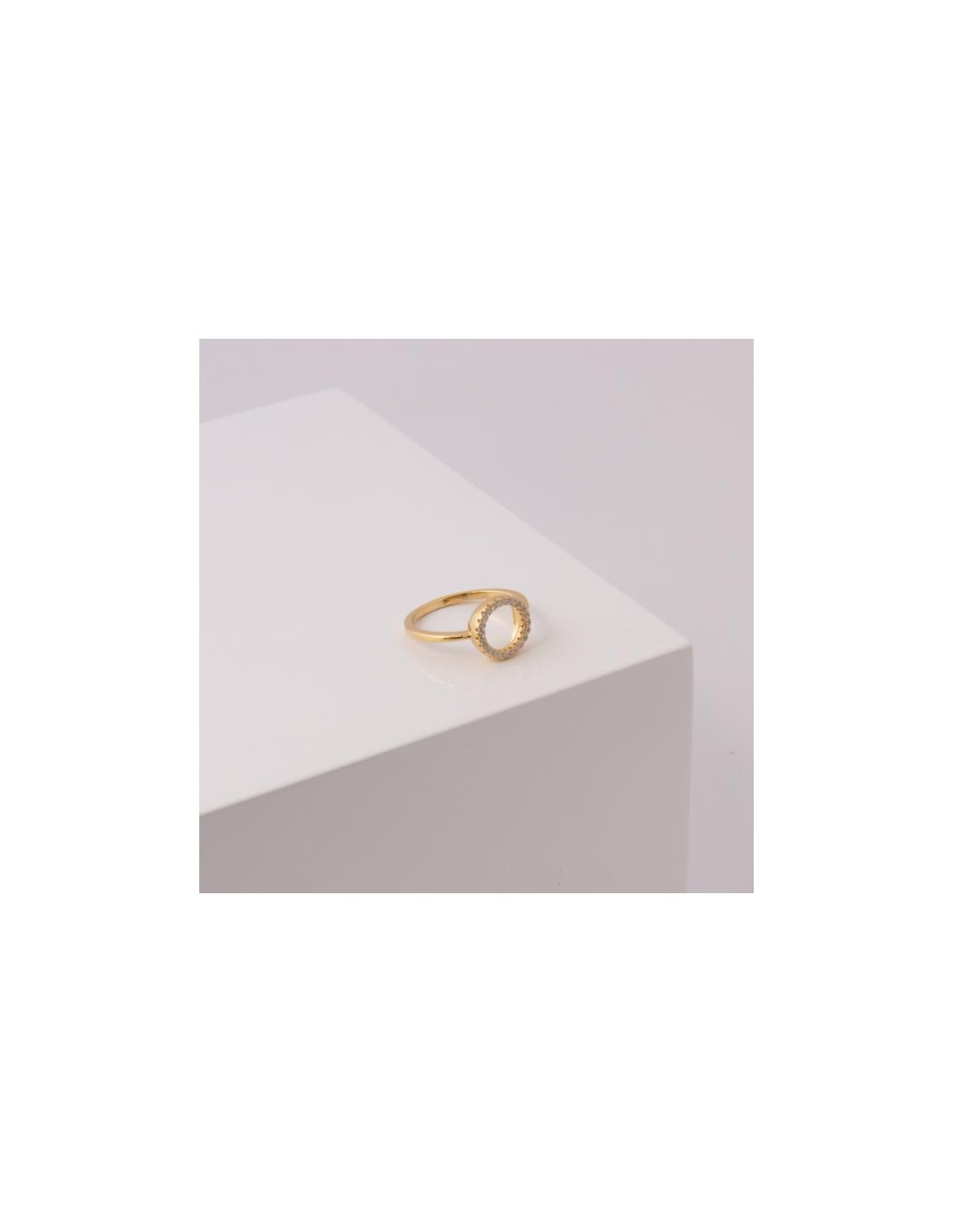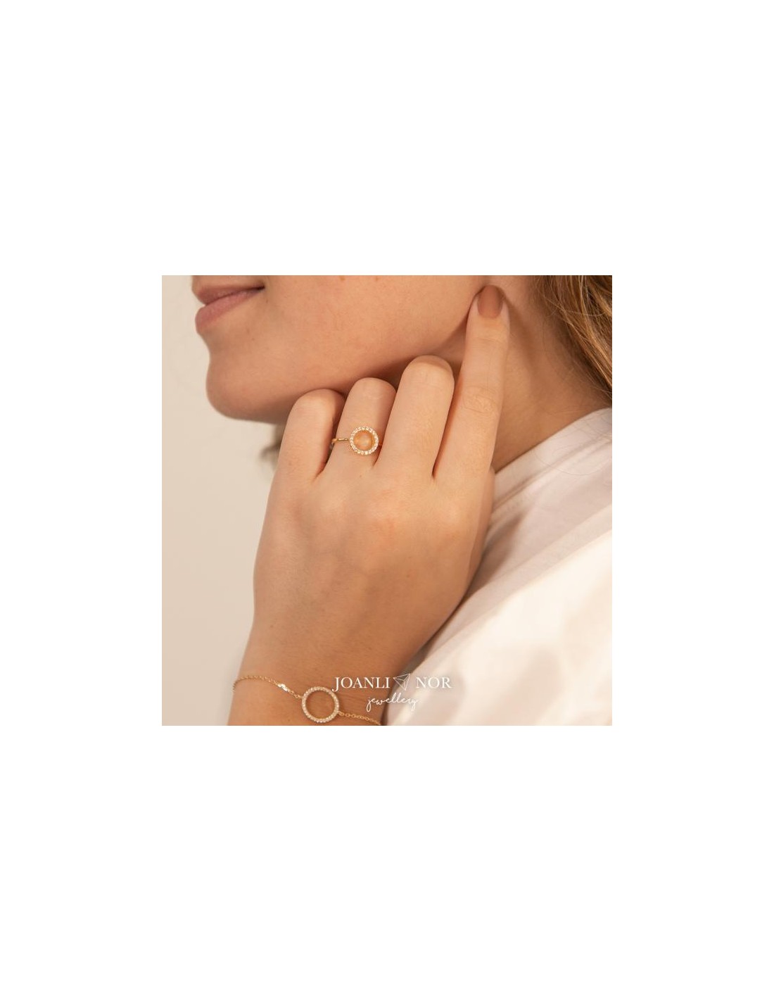 Skal du også være med på moden? Så er denne cirkulære ring, fra vores Anna serie, et godt bud på dit nye smykke. De funklende zirkonia sten får ringen til at stråle. Vores forgyldte sølvring vil uden tvivl klæde din hånd, og give dig en flot udstråling, som mange vil beundre.