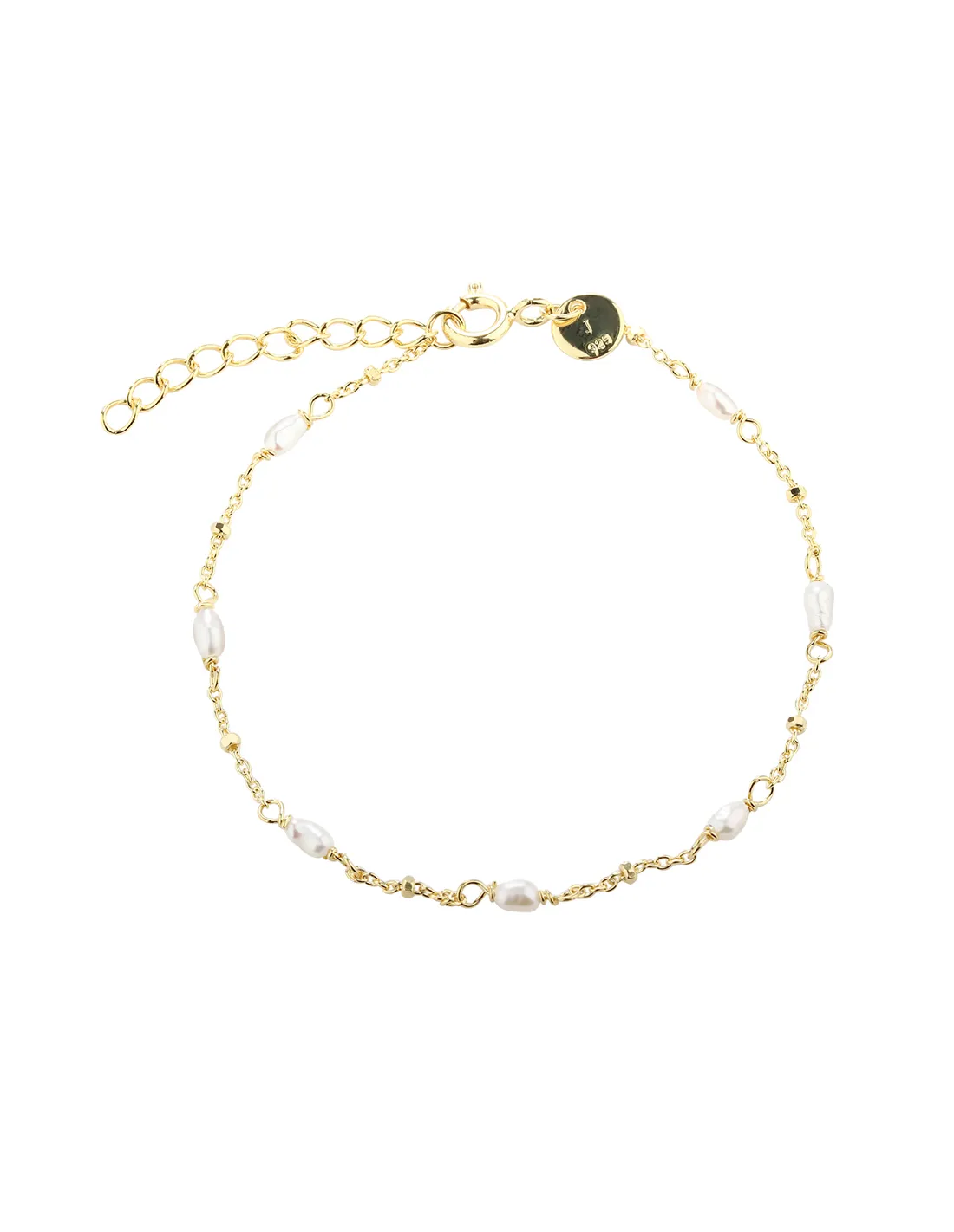 Armbånd i forgyldt sterling sølv med små dots og risformet ferskvandsperler.