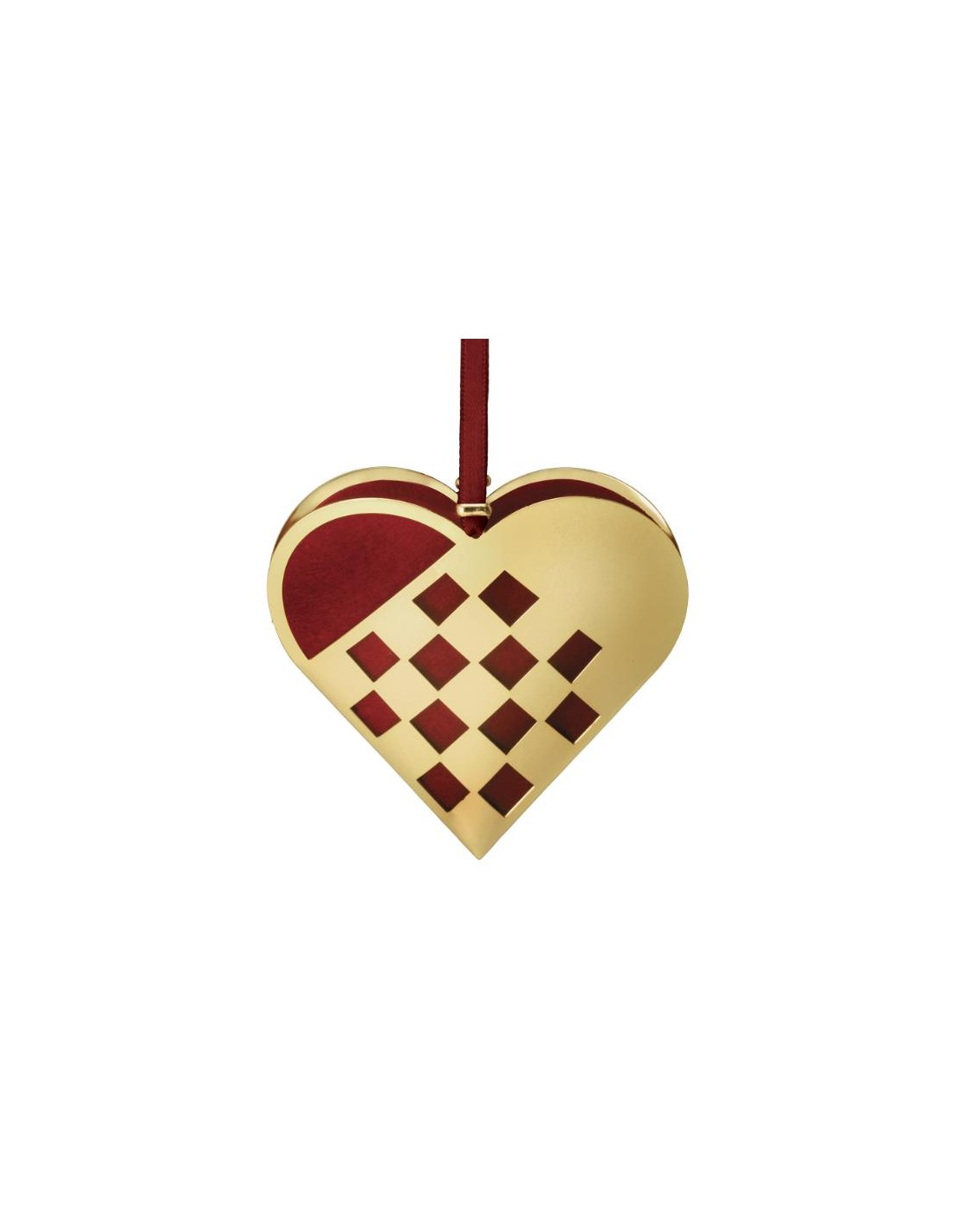 Julehjertet er udformet i messing og belagt med 18 kt. guld. Det måler 20 cm. i højden og 22 cm. i bredden og der medfølger et justerbart, rødt bånd.