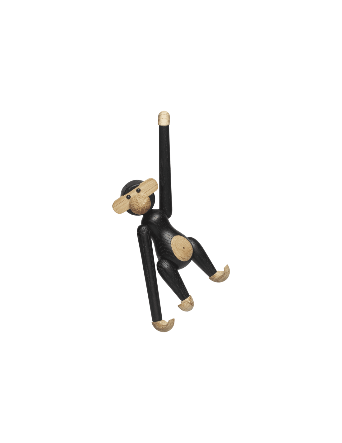 Byd velkommen til en helt ny abe i Kay Bojesens designunivers: den elegante og grafiske miniabe i mørkbejdset egetræ. Den unikke håndværksfinish, der kendetegner Kay Bojesens produkter, er tydelig i den nye miniabe, hvor træet spiller hovedrollen og er behandlet med nænsomhed og respekt. Det kræver stor omhyggelighed og erfaring, når abens små dele skal bejdses, og der ligger mange timers håndværk i hver enkelt lille abe. Den bejdsede overflade giver træet en dybsort overflade med glød, varme og liv, og de imponerende håndværksdetaljer skaber sammen med den mørke farve et eksklusivt udtryk. Den nye, stilfulde abe er den perfekte gave til designelskeren. Eller til ham eller hende, der slet ikke kan få nok af Kay Bojesens aber. Uanset hvor aben flytter ind, vil den skabe smil og stil med sin finurlige fremtoning og sit elegante udseende.