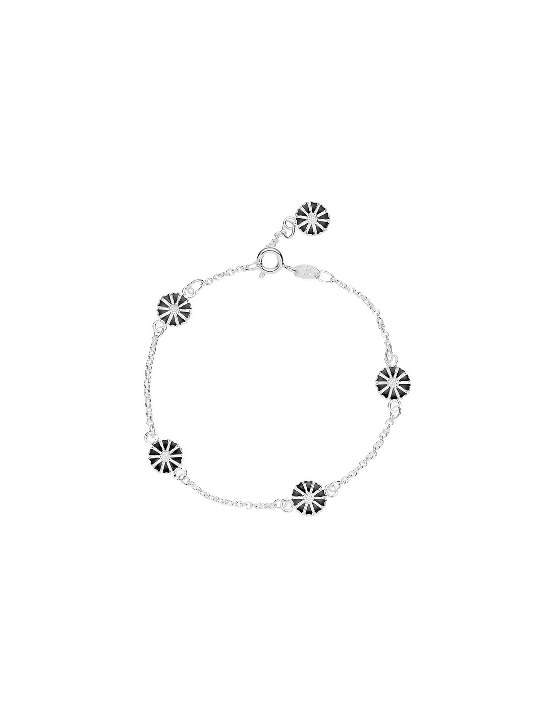 Marguerit armbånd 5x7,5mm i sølv med sort emalje. Kæden kan justeres 17+2cm.