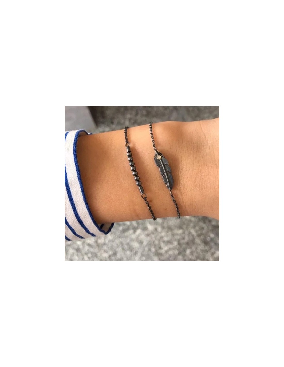 HEIRING | ARMBÅND MED LILLE FJER OG BRILLANT OXIDERET