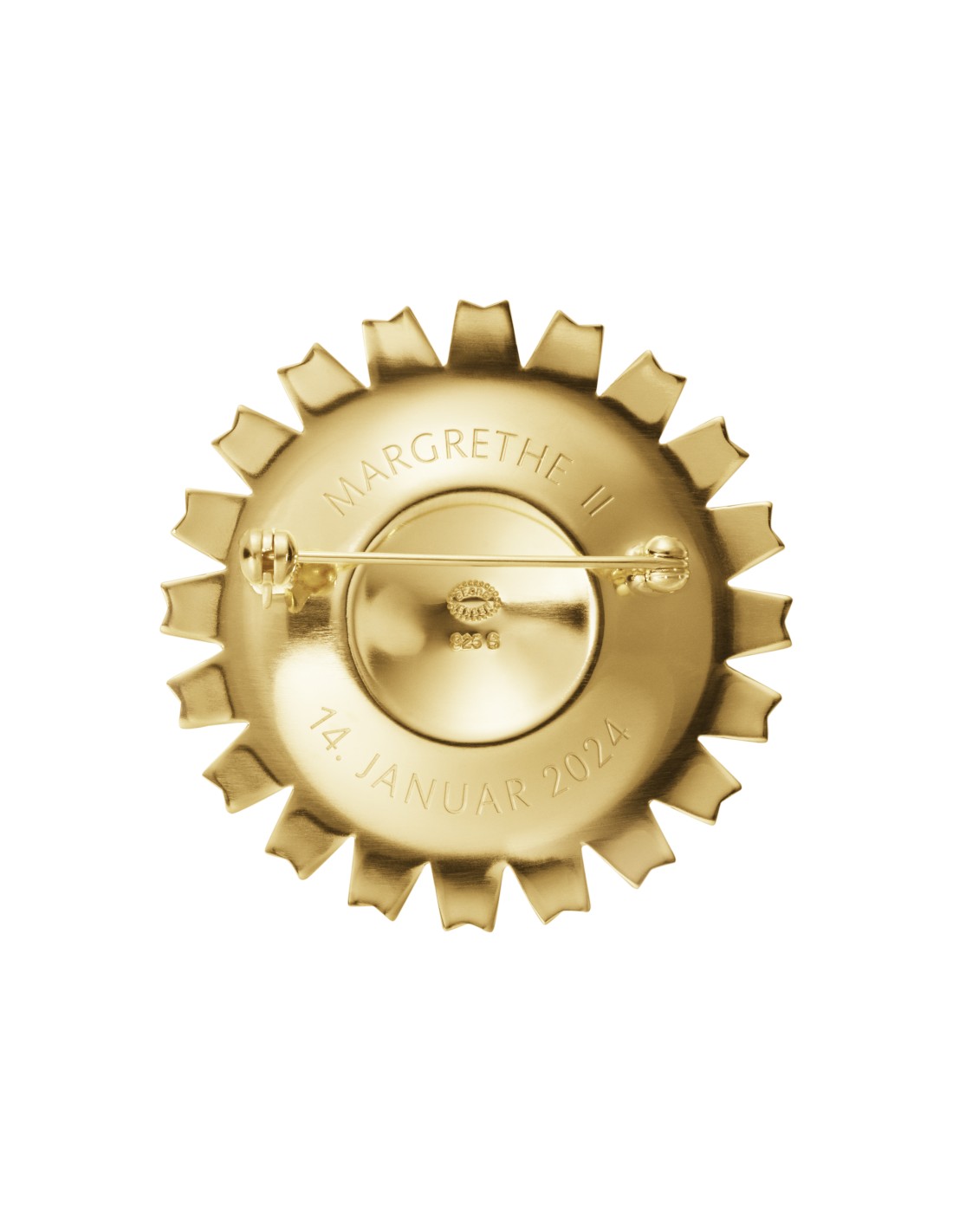 Denne særlige DAISY broche udgives til minde om Hendes Majestæt Dronning Margrethe II's enestående 52-årige regeringsperiode. Brochen, som er fremstillet i sterlingsølv og belagt med 18 kt. guld, har datoen for Hendes Majestæt Dronning Margrethe II's abdikation indgraveret: 14. januar 2024. Designet stammer fra en margueritformet broche, som Hendes Majestæt Dronning Ingrid bar under sit bryllup med Hans Majestæt Kong Frederik IX. Efter at deres datter Margrethe, den senere Dronning Margrethe II, blev født, fremstillede mange danske juvelerer margueritformede design som gaver, fordi Margrethe fik kælenavnet Daisy, det engelske ord for marguerit. Det var netop dette motiv, der udgjorde inspirationen bag Georg Jensens ikoniske og populære DAISY smykkekollektion.