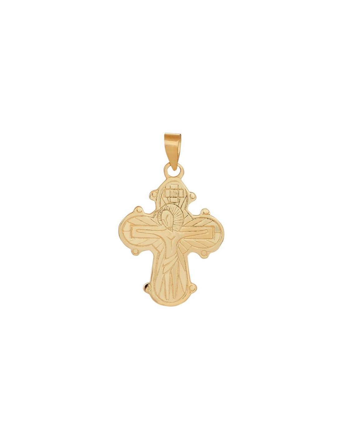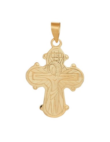 Stilistisk Dagmarkors i 8 kt. guld. På forsiden ses en stilistik version af den korsfæstede Jesus og på bagsiden kan læses Fadervor.