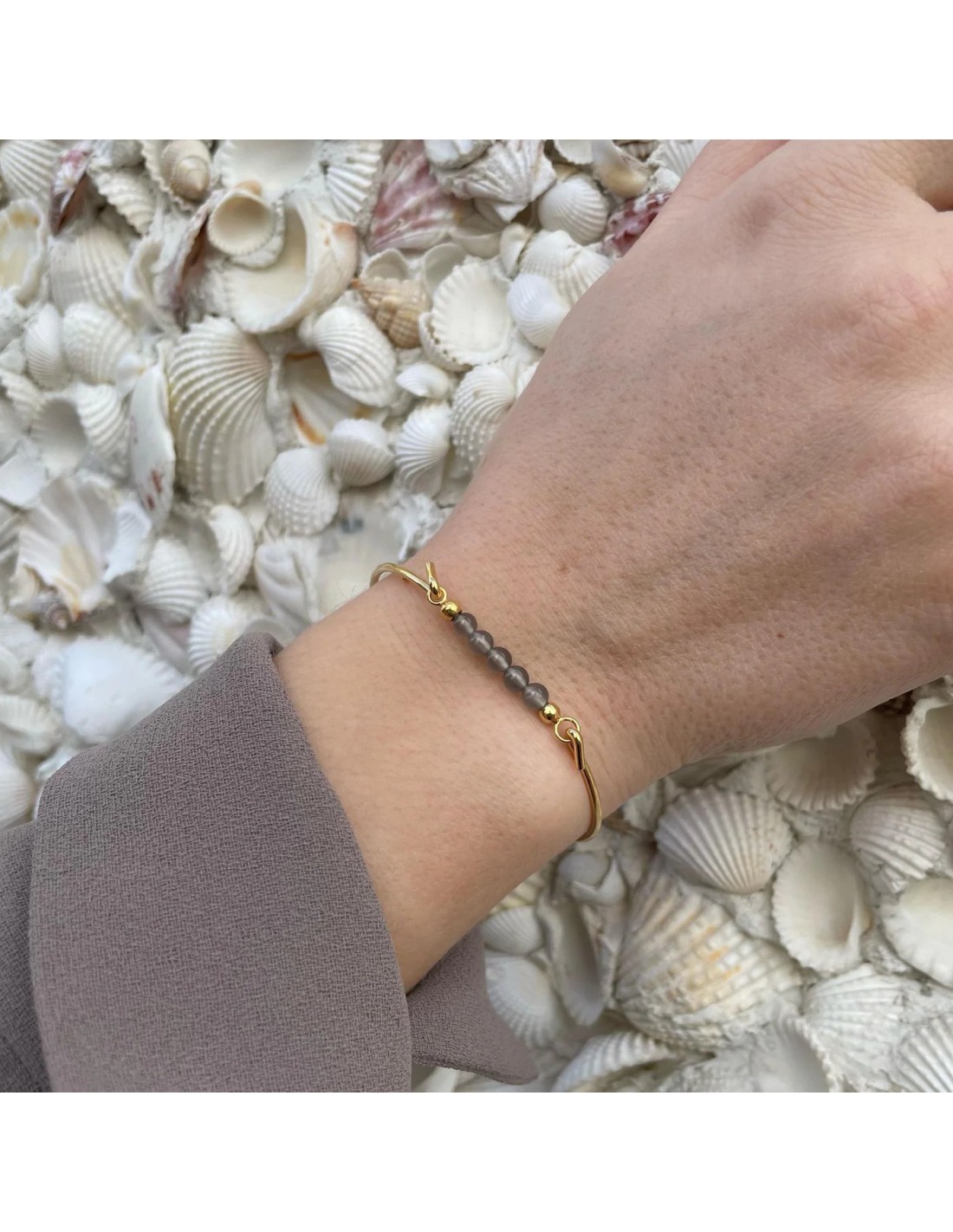 HEIRING | GRÅ MÅNESTEN TOP TIL MULTISIZE ARMRING FORGYLDT