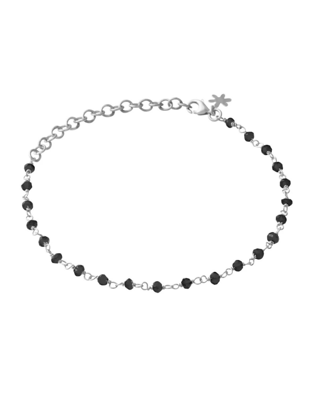 Armbånd 16-20 cm, sølv, knyttet 3-4 mm facetsleben sort spinel.
