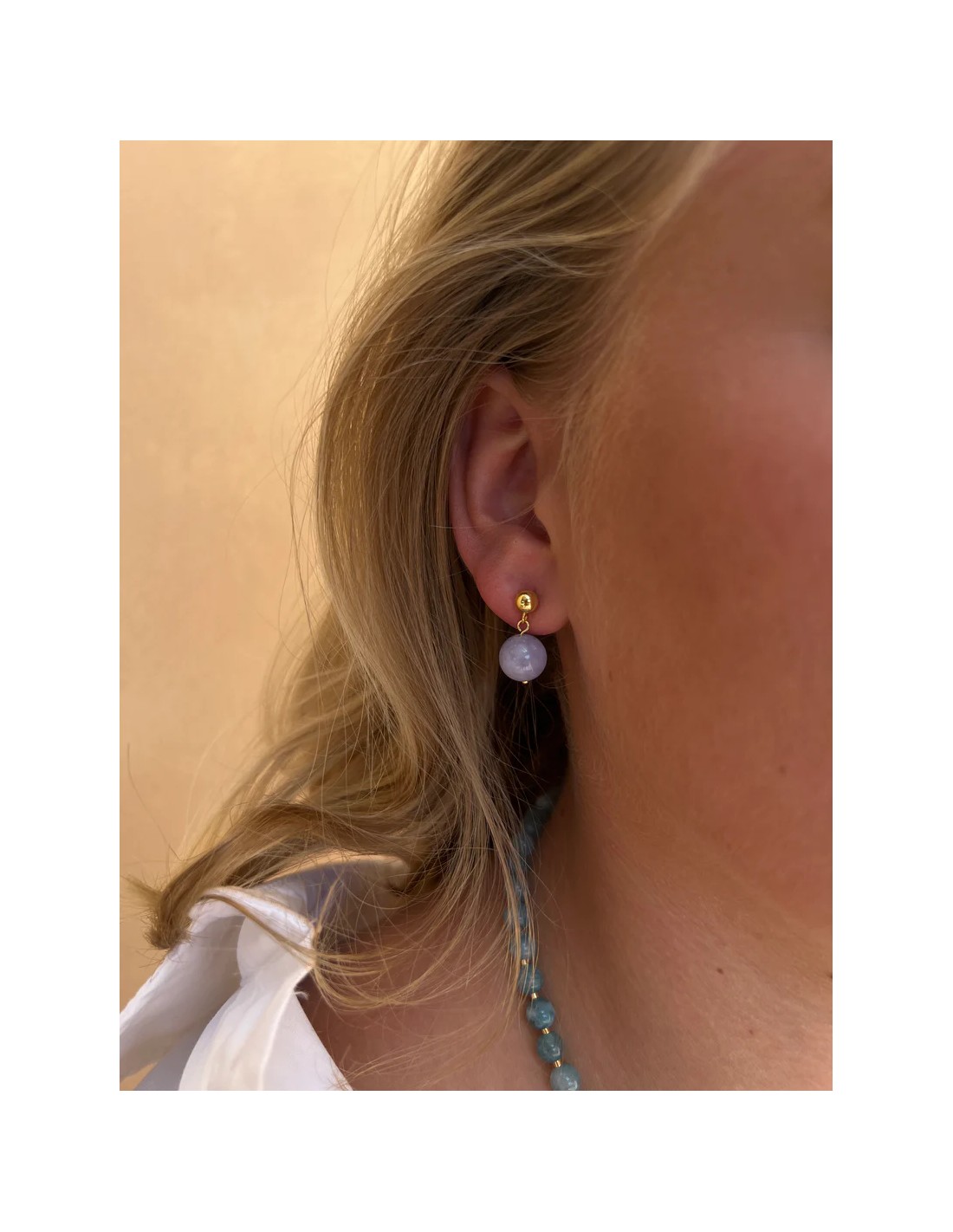 Nora Aquamarin krystal øreringene er skabt med det formål at hjælpe dig med at finde mere mod, være beskyttende og finde harmoni. Aquamarin menes at have beroligende egenskaber, der kan hjælpe med at lindre stress og angst. De blå toner fra aquamarin står for klarhed og indre ro. Håndlavet med omhu og finesse, er øreringene mere end et smykke; de er et symbol på balance og positivitet.