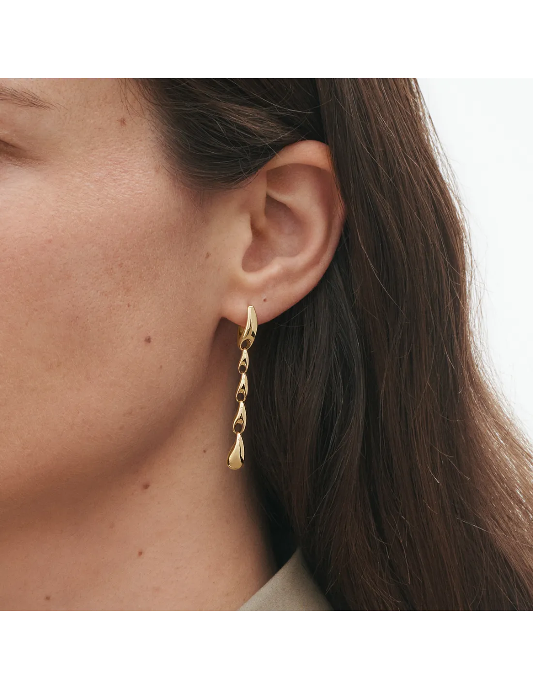 Disse skulpturelle øreringe i 18 karat guld er designet af Jacqueline Rabun, som er en af Georg Jensens mangeårige samarbejdspartnere. Designet er bygget op af tre guld-led i organiske former, som hænger fra en loop og fuldendes af et dråbeformet led forneden. Det er et markant design, som giver et strejf af kant til enhver stil.