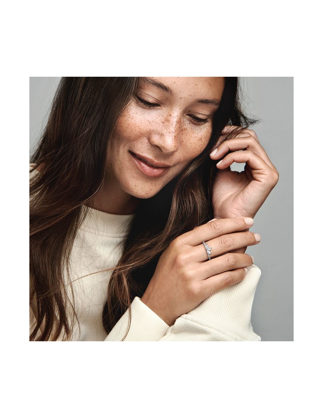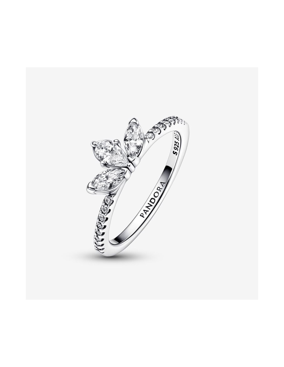Vores Funklende Herbarium Klynge Ring har tre midtersten, to marquise-formede og en pæreformet, der sidder i en blomsterlignende form. Den elegante ring er fremstillet i sterlingsølv med inspiration fra naturens skønhed med silhuetter af blomsterblade i et design, der aldrig går af mode. Når de styles, så de sidder modsat hinanden, danner de sammen et helt klyngemotiv, der giver din ringkombination et fuldendt udtryk.