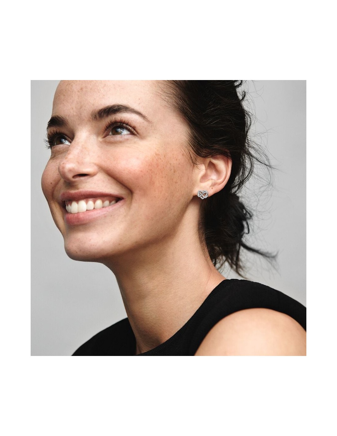 De Funklende Uendelighedens Hjerte ørestikker repræsenterer den evige kærlighed, der binder familien sammen, og er en meningsfuld gave til dine nærmeste. Hver ørering i sterlingsølv har et åbent hjertemotiv med funklende sten langs kanten og et asymmetrisk uendelighedssymbol, der snor sig om hjertet. Øreringene sælges som par. Bær dem for at vise din påskønnelse af en, du holder af, eller giv dem som gave til en, du holder af.