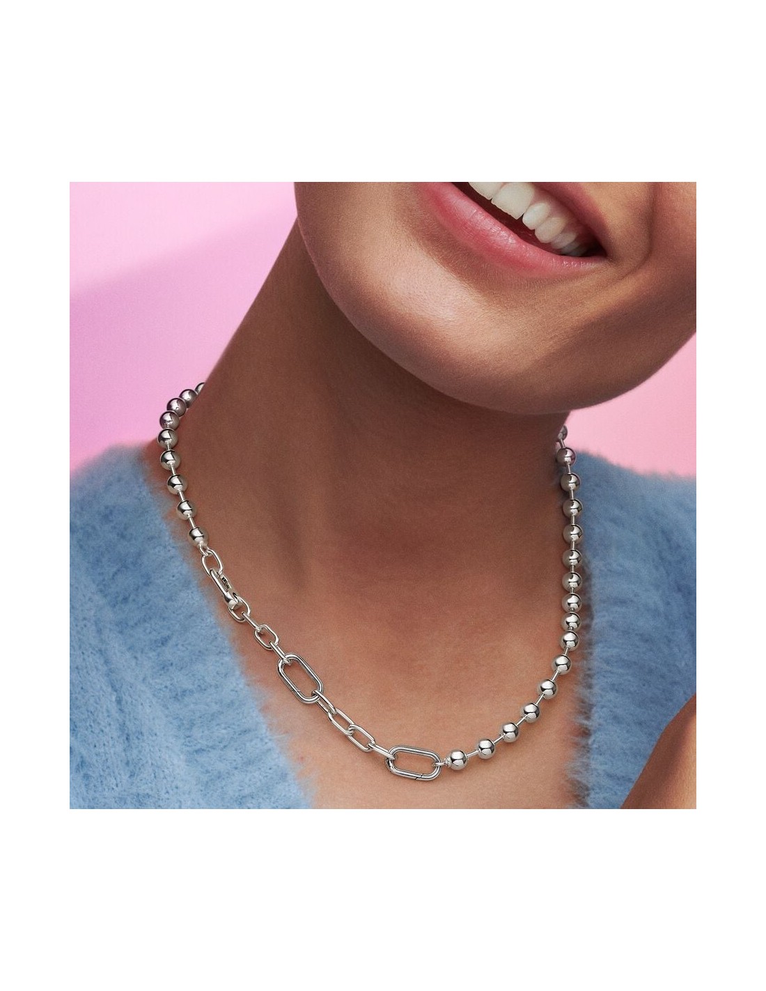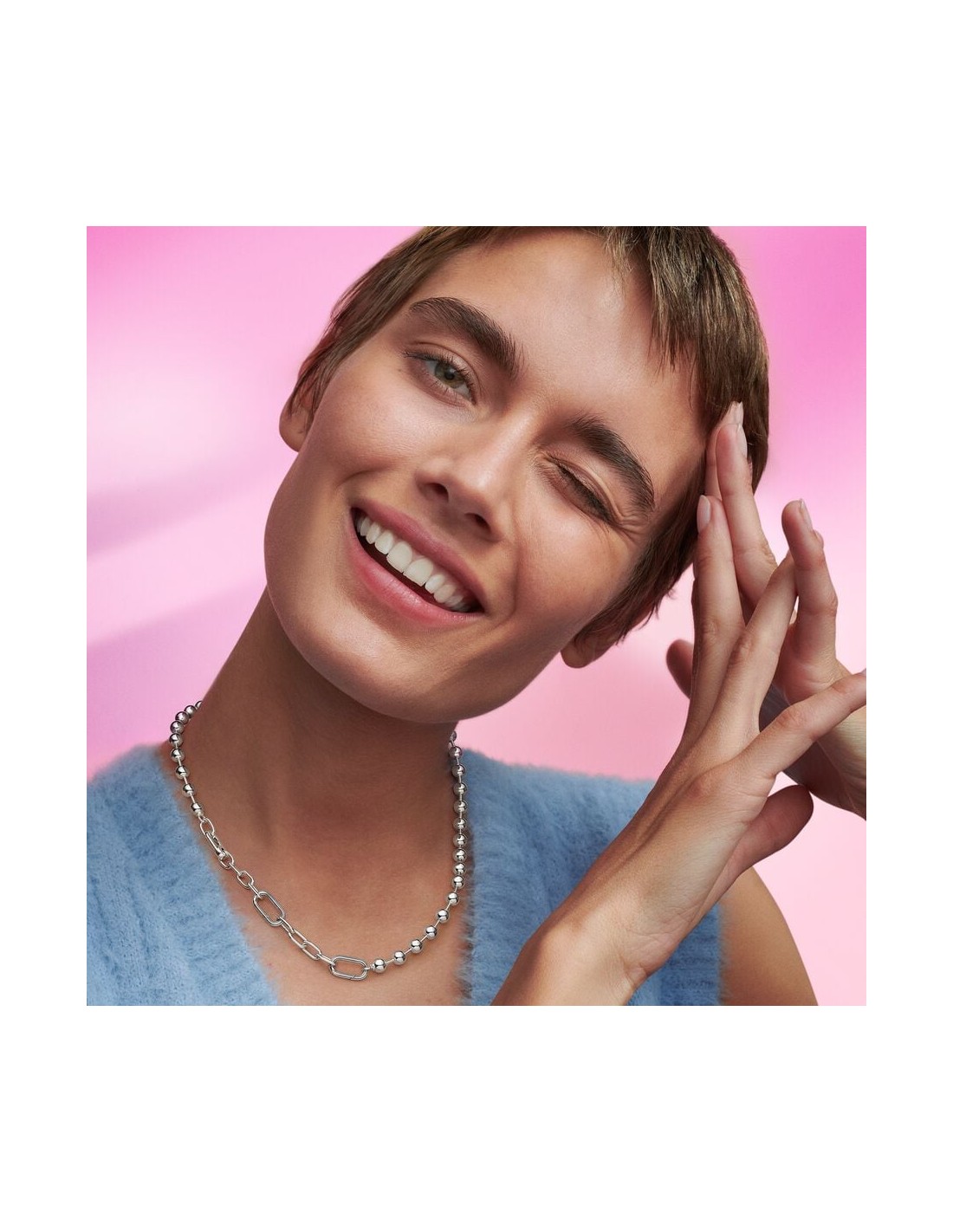 Pandora ME Metalperle & Ledhalskæde viser, at modsætninger tiltrækker hinanden. Ved at sætte to væsentlige smykker sammen – metalkugler og kædeled – kan dette armbånd gøres personligt ved at sætte leddene sammen med minicharms med vedhæng eller medaljoncharms. Denne statement-halskæde, der balancerer 90'ernes indflydelse på punkrock-stilen med det tidløse, slanke sølv, kan bruges alene eller kombineres, sættes sammen i lag og styles på nye måder hver dag.