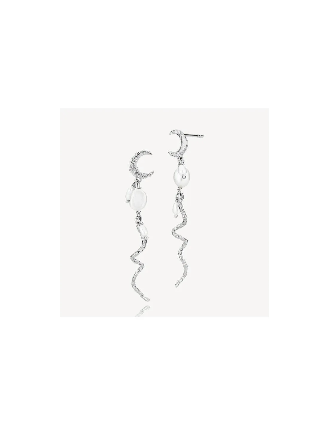 Sterling sølv ROSA øreringe, designet med ferskvandsperler og en smuk måne, samt den smukkeste twister ende. Smukke øreringe, der passer godt til både fest og hverdag.