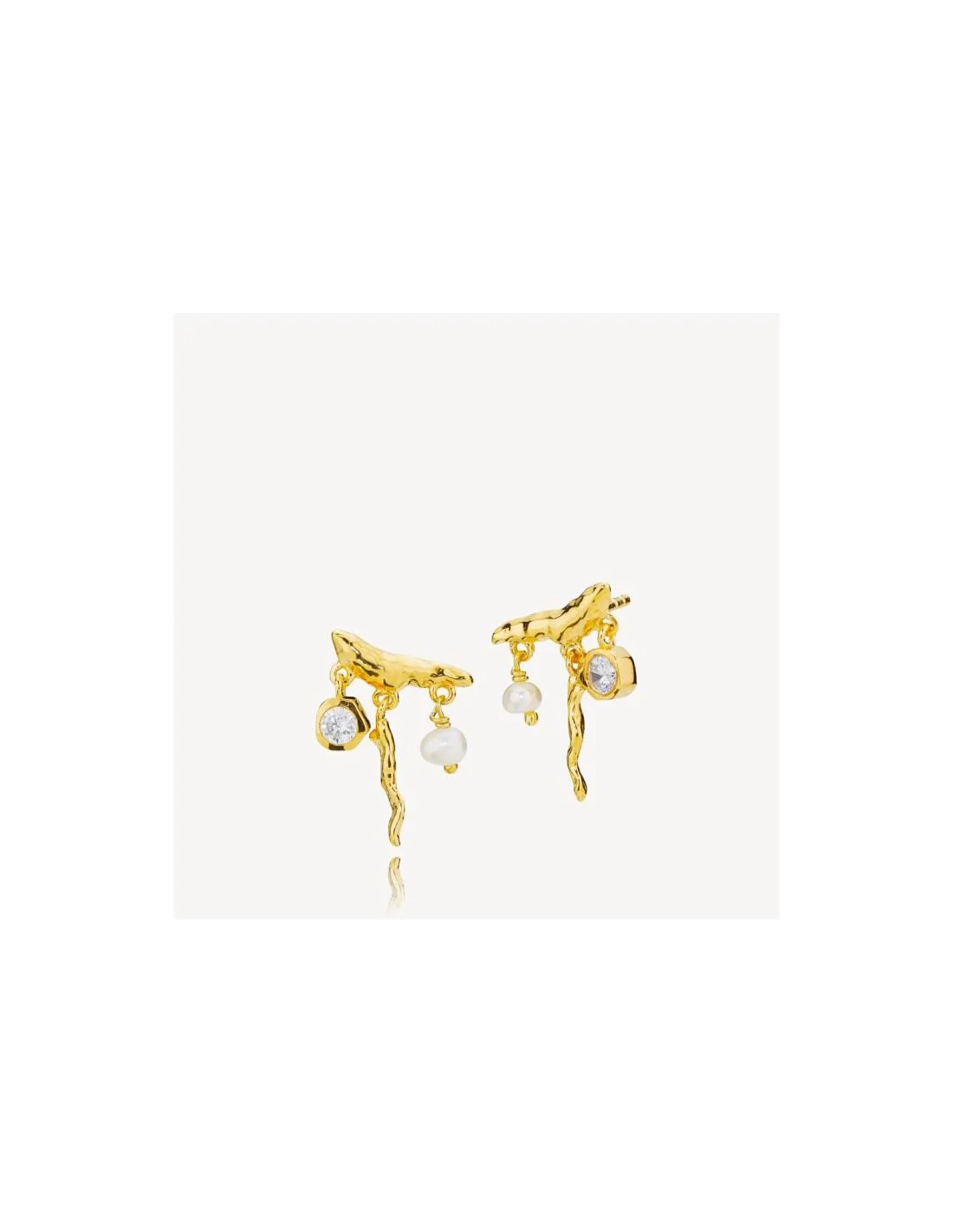 Smukke øreringe med ferskvandsperle og Zirkon i sterling sølvforgyldt. Perfekt som hverdagssmykker, og kan nemt matches med andre øreringe.