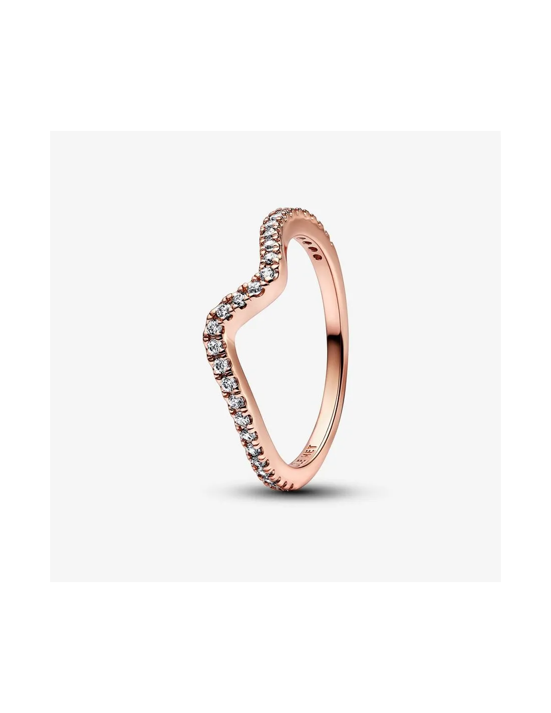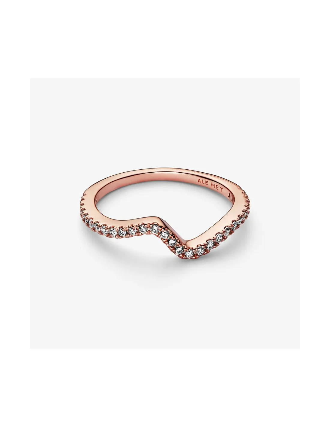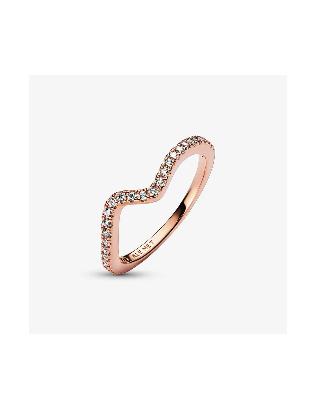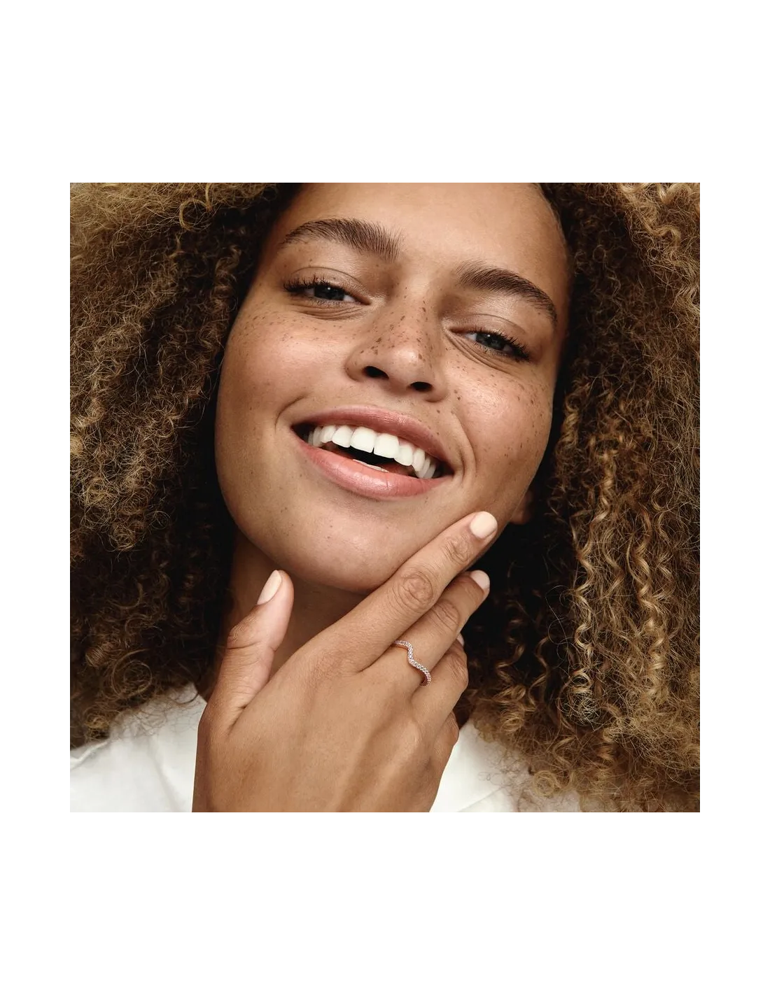 Den funklende bølgering er belagt med 18 kt. roséguld og har en kurvet form, der minder om en bølges bevægelse, samt en række med runde og brillantslebne kubiske zirkonia, som reference til solens glitrende stråler på havet. Brug ringen alene eller sæt flere ringe sammen i et moderne look, du vil elske i mange år frem.