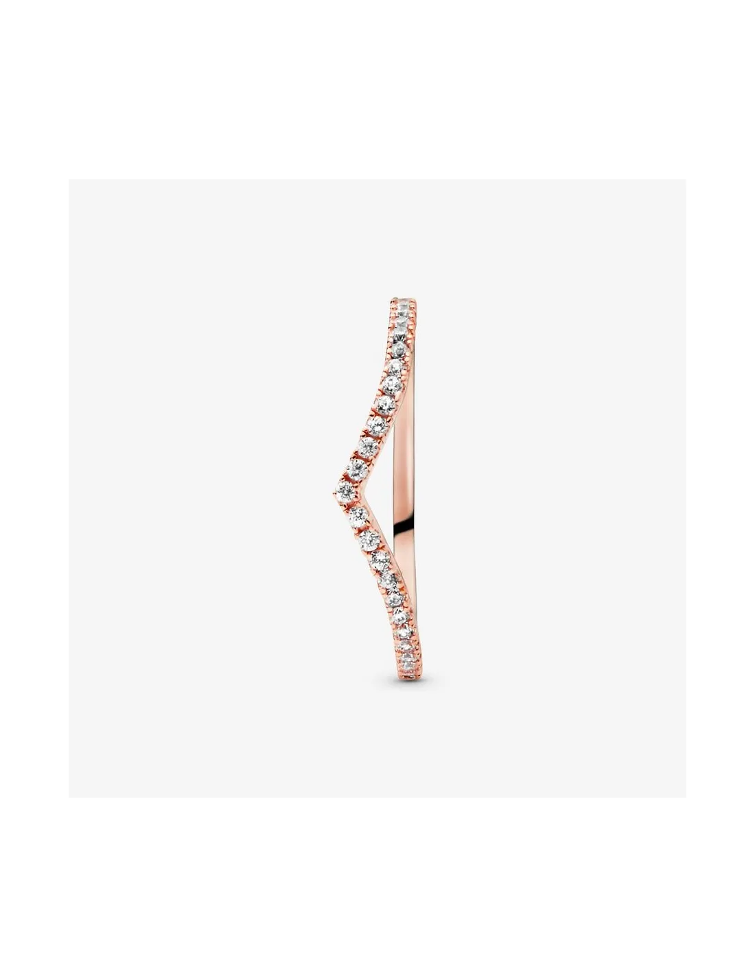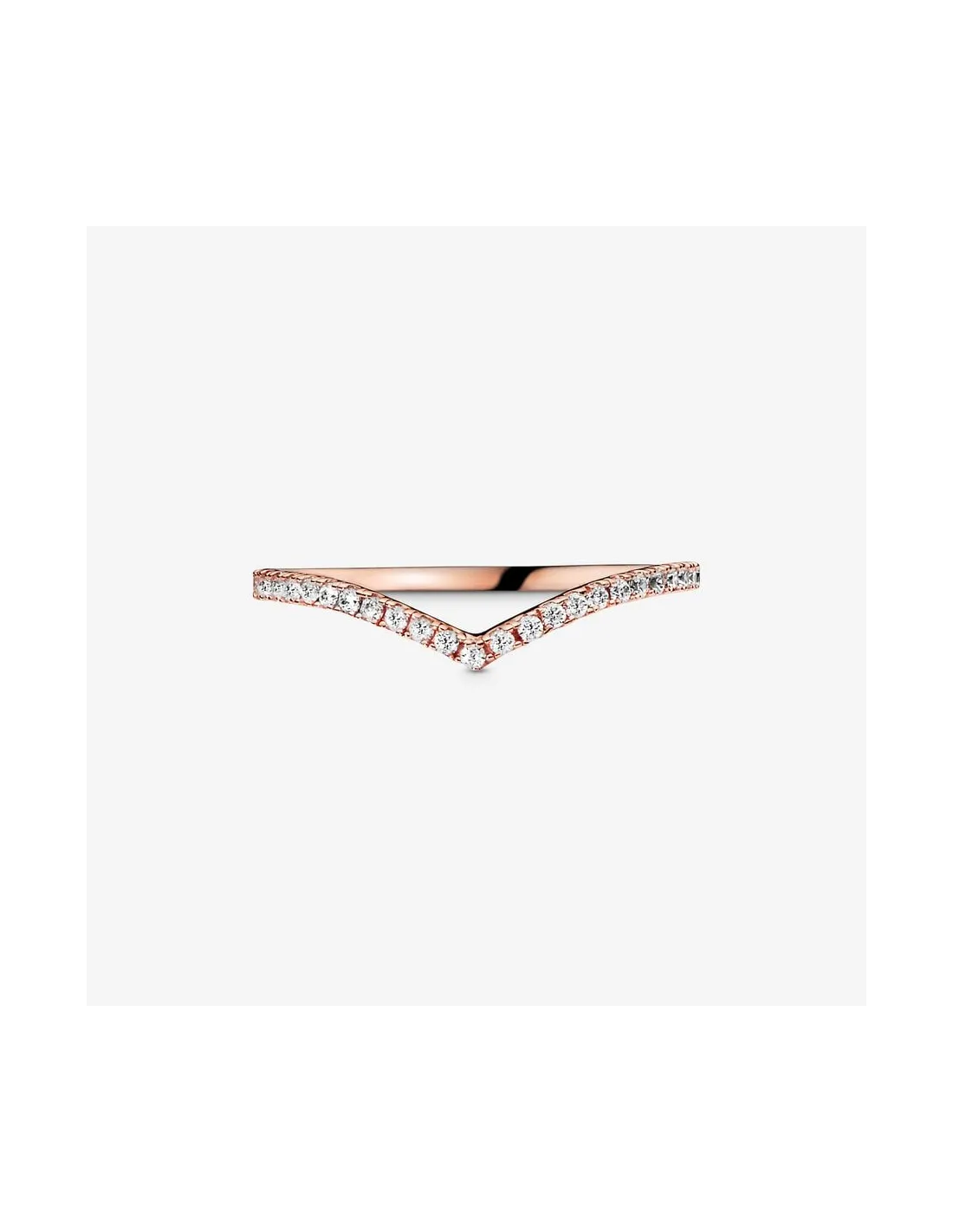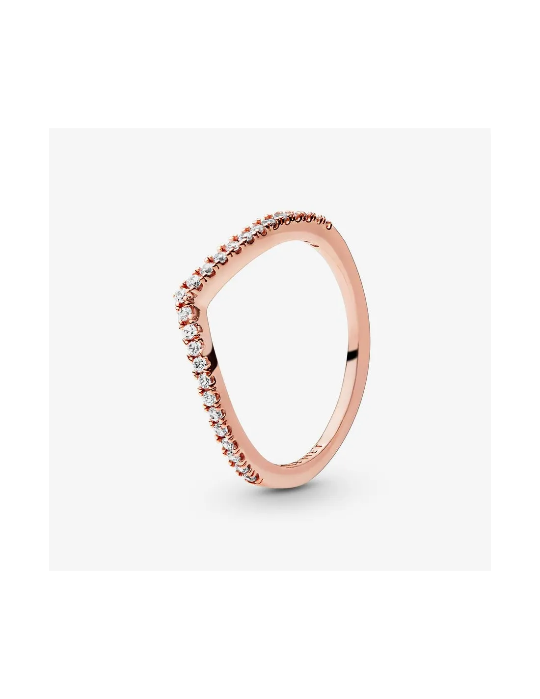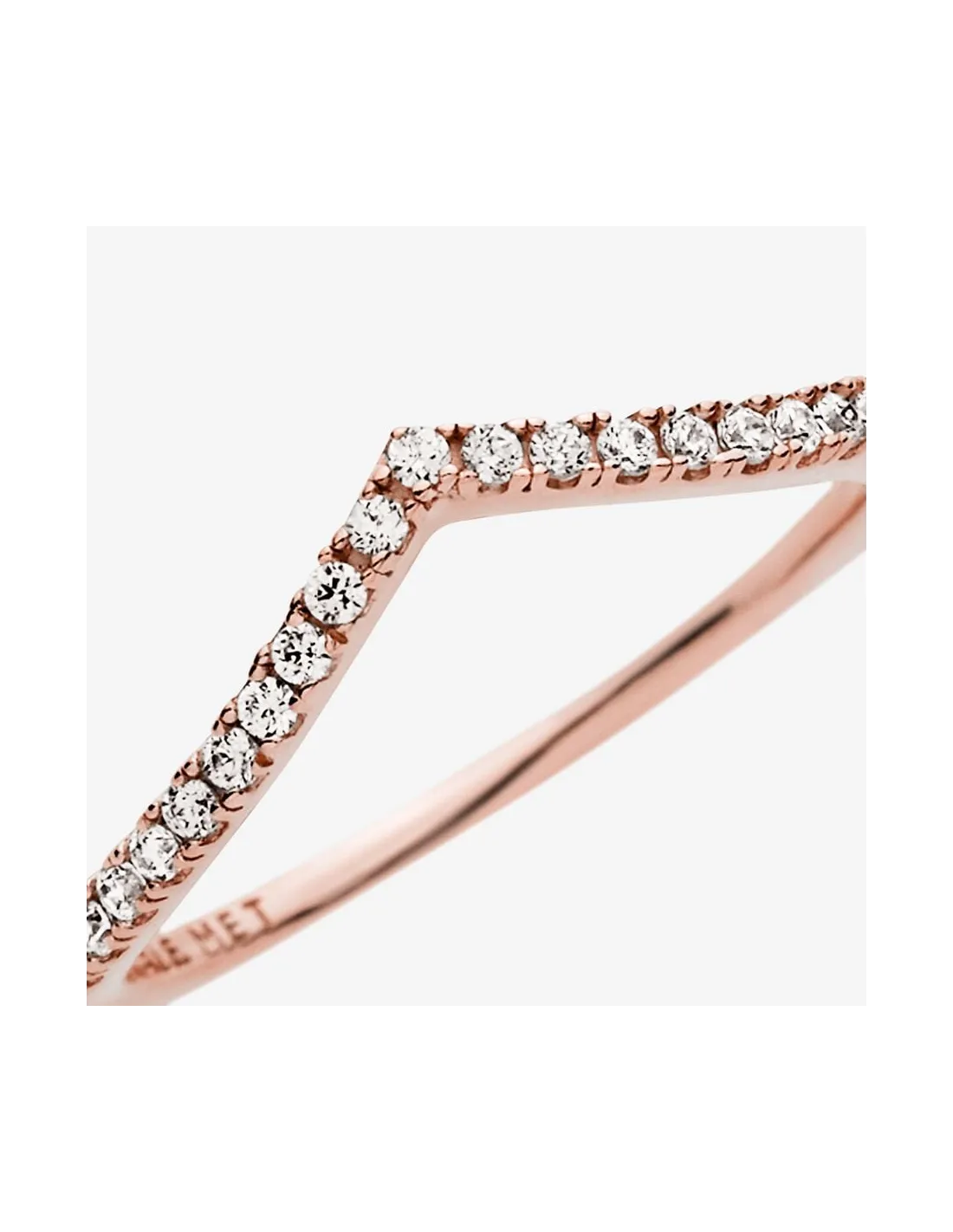 Lad dine ønsker gå i opfyldelse med denne smukke Funklende Wishbone Ring, der har en linje af kubisk zirkonia på et bånd belagt med 14 kt. roséguld. Den enkle og elegante ønskebensformede ring kan bæres alene som et glitrende blikfang eller sættes sammen med andre stabelbare Pandora ringe i et unikt, helt personligt look.