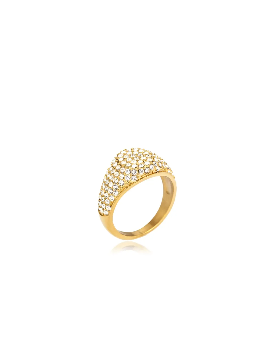 Super smuk ring med påsatte hvide zirkoner. Bring lidt bling og glam ind i din hverdag, eller brug det til resten af lejlighederne.