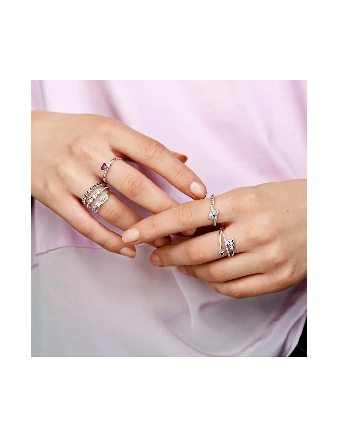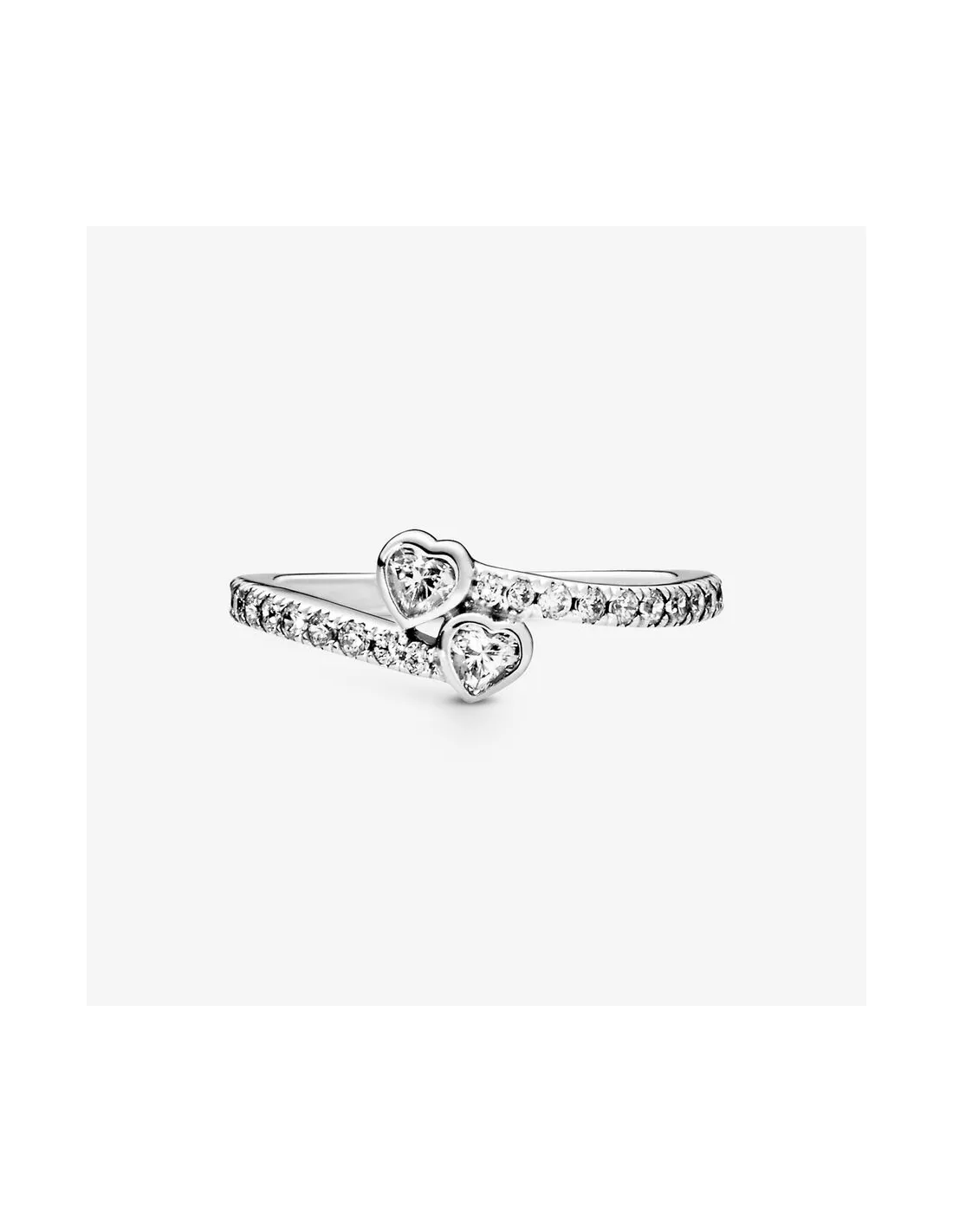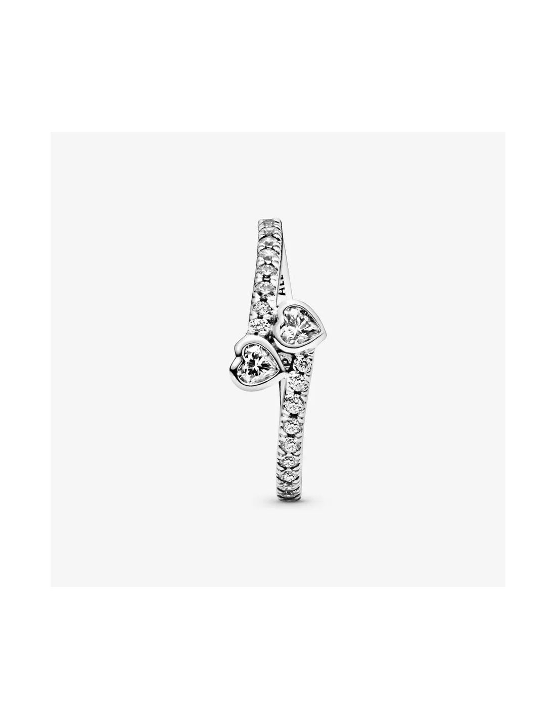 De to sammenflettede hjerter gør denne fantastiske ring til det ultimative kærlighedssymbol. Denne Pandora hjertering er håndforarbejdet i sterlingsølv og har funklende kubisk zirkonia samt to hjerteformede sten, der leder tankerne hen på kærlighed og venskab. Den perfekte romantiske gave til Valentinsdag, fødselsdage og mærkedage - eller bare for at sige "jeg elsker dig".