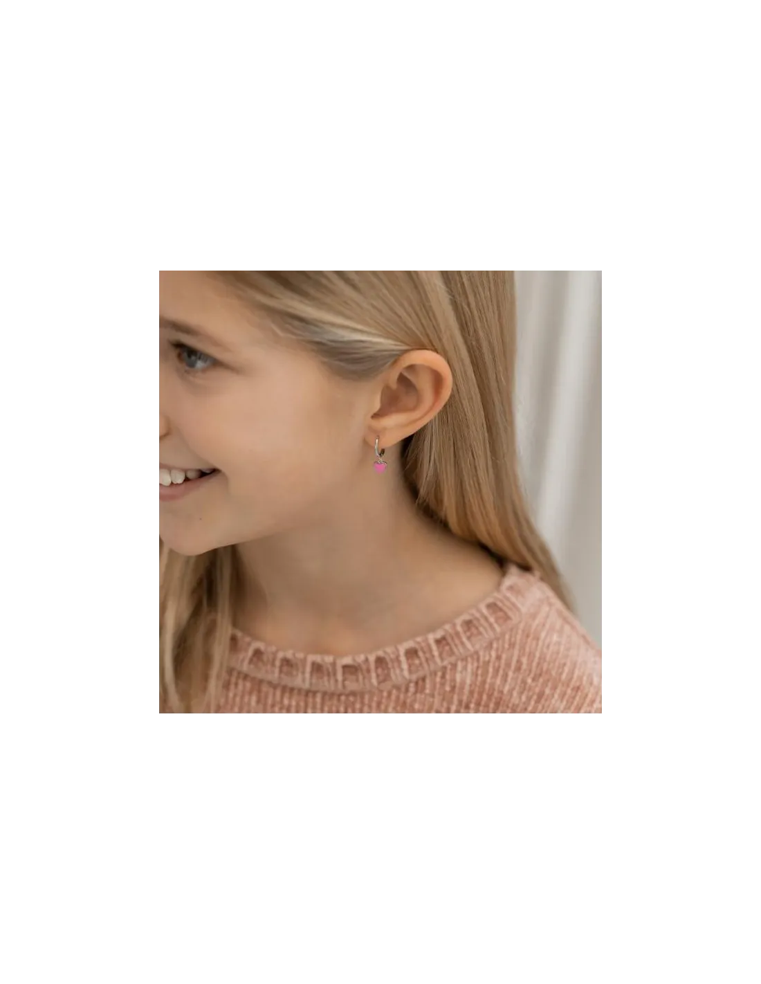 NOA KIDS JEWELLERY | Rhd. Sølv creoler med pink emalje
