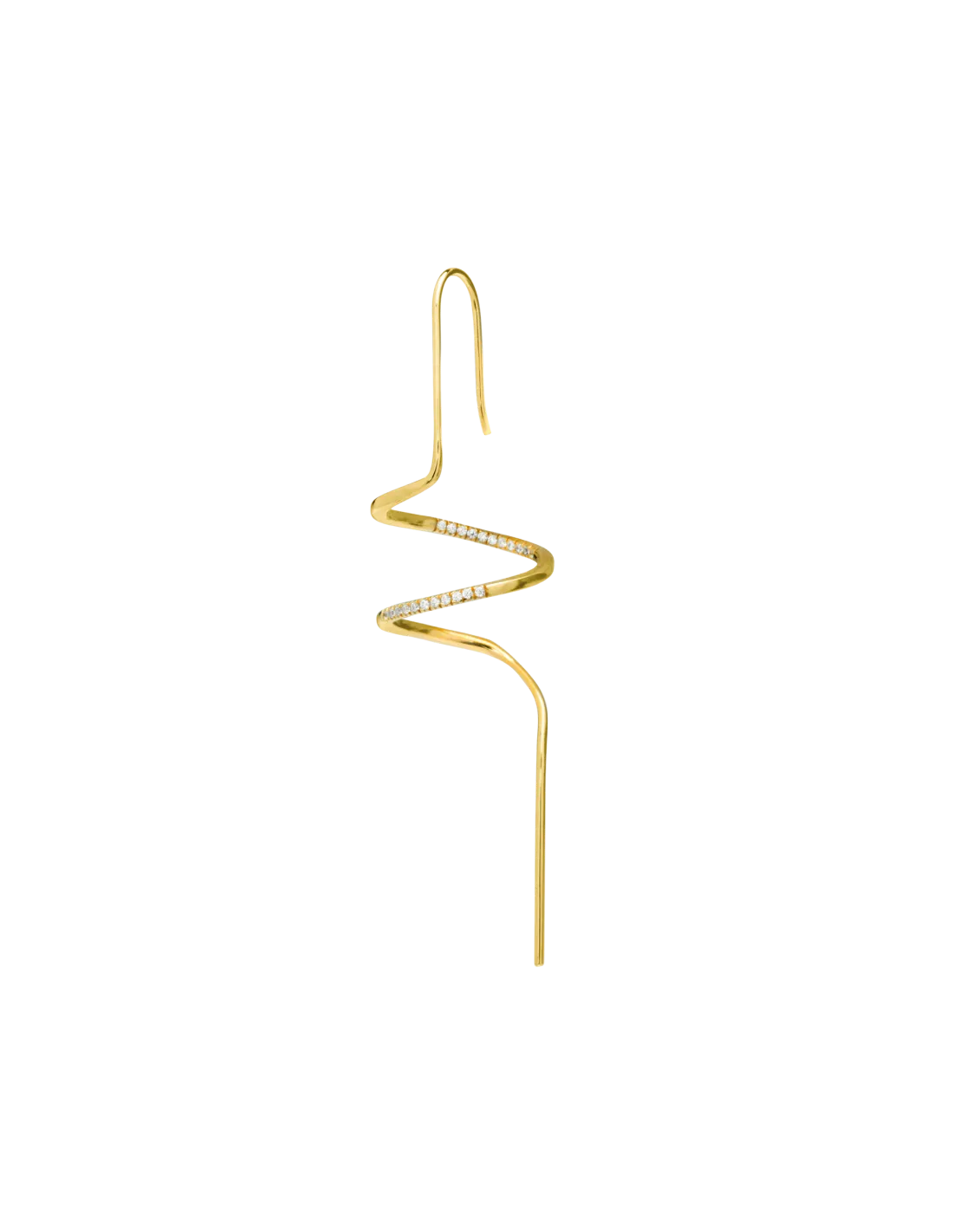 Grace Spiral 01 ørering – 18K guldbelagt sølv med zirkonia, 7 cm lang