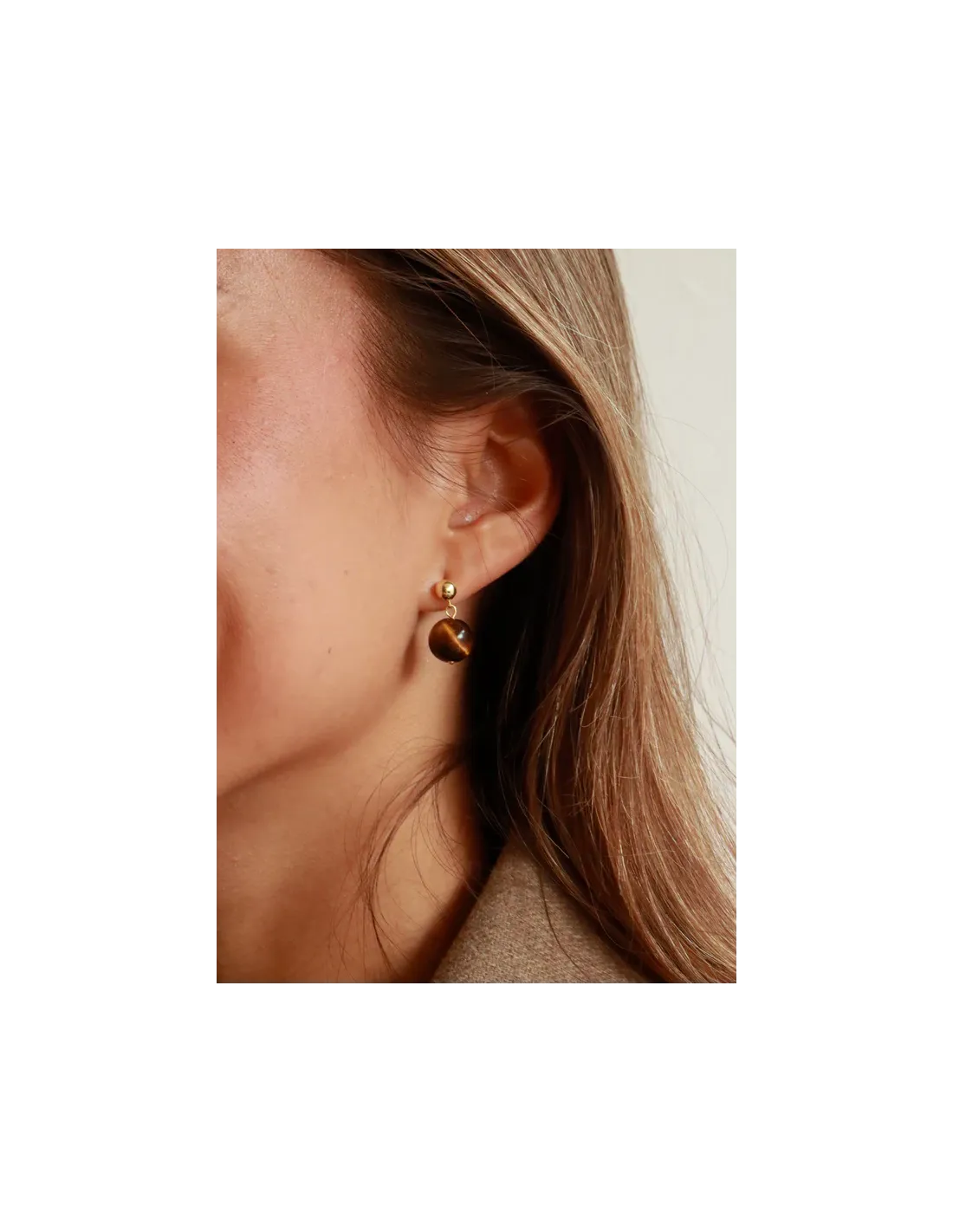 Nora Tiger Eye krystal øreringene er skabt med det formål at hjælpe dig med at finde din indre styrke, healing og fremme klarhed i dit liv. Den gyldenbrune tigerøje-krystal symboliserer jordforbindelse og selvtillid. Håndlavet med omhu og præcision er øreringene mere end blot et smykke; de er et udtryk for naturlig skønhed og en kraftfuld, beskyttende energi.