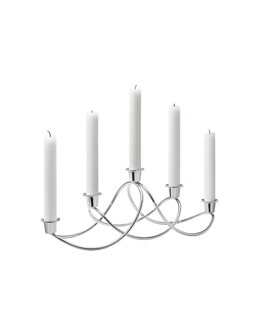 Med sine elegant svungne former er lysestagen Harmony svær at få øjnene fra – uanset hvor du placerer den. Stagen har plads til fem stearinlys, og kombinationen af det moderne og det klassiske look gør den til en perfekt gaveidé fra Georg Jensens kollektion.