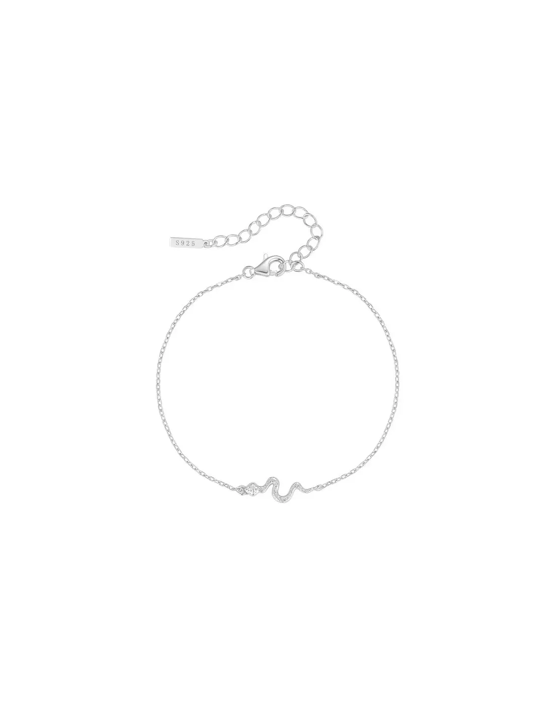 Elaphe Bracelet er et delikat og stilfuldt armbånd med en fin kæde og et lille fint slangevedhæng i midten. Den detaljerede slangeform tilfører et subtilt strejf af mystik og symbolik, mens det minimalistiske design gør armbåndet alsidigt og let at bære. Perfekt til at skabe et sofistikeret og edgy udtryk, enten alene eller i kombination med andre smykker.
