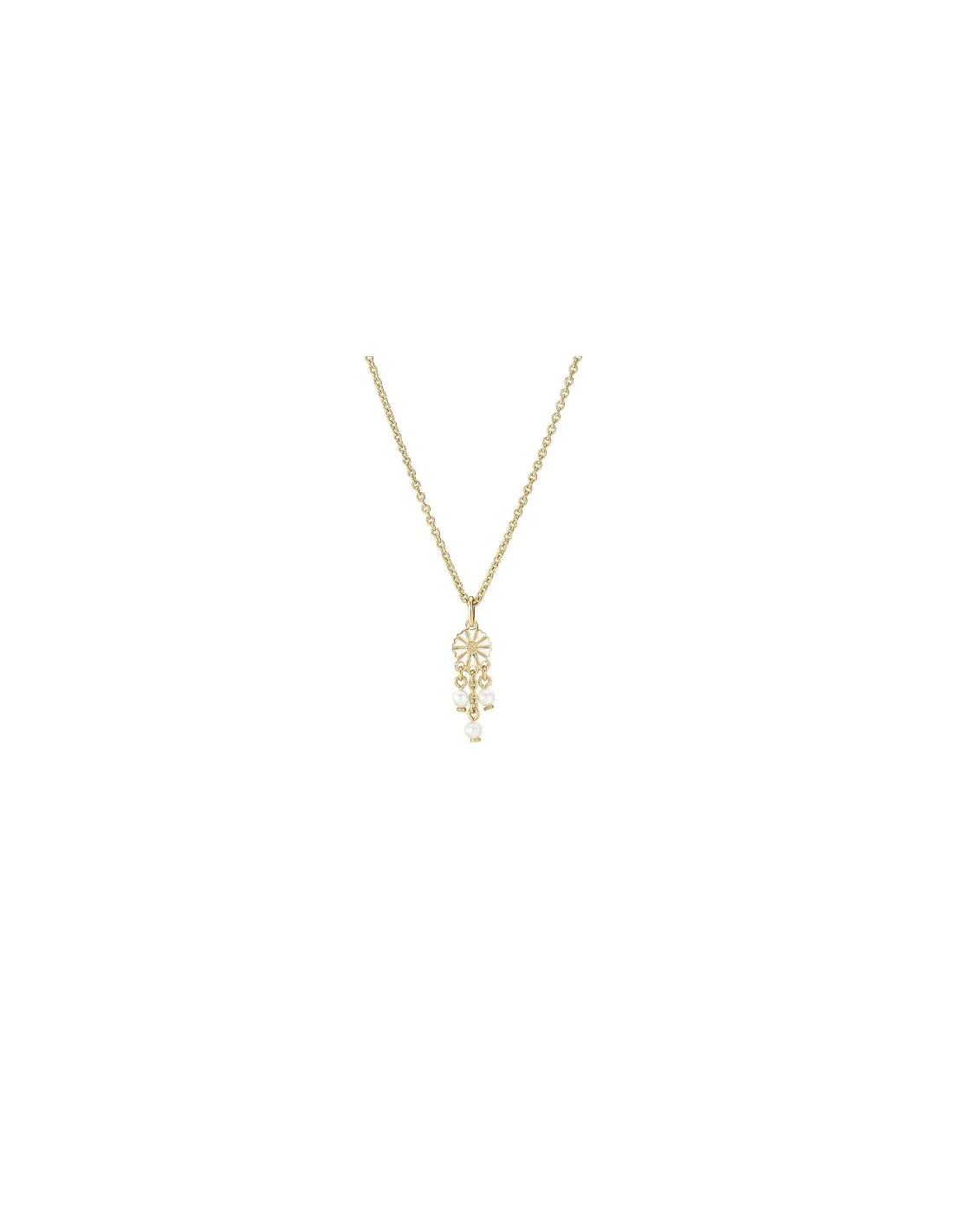 Dette smukke Marguerit Collier fra Lund Copenhagen kombinerer tidløst design med naturlige elementer. Smykket er fremstillet i 24 karat forgyldt 925 sterlingsølv og prydet med en 7,5 mm marguerit i hvid emalje samt tre elegante ferskvandsperler. Den harmoniske blanding af marguerit-blomstens klassiske udtryk og perlernes subtile skønhed skaber et unikt og sofistikeret smykke.