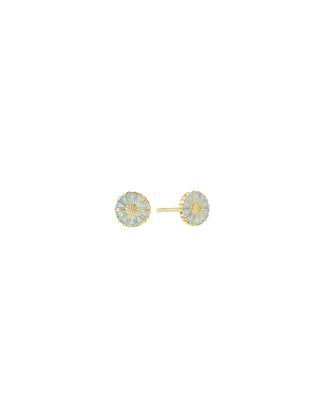 Disse Marguerit ørestikker fra Lund Copenhagen er en tidløs kombination af klassisk design og moderne detaljer. Fremstillet i 24 karat forgyldt 925 sterlingsølv og dekoreret med en 7,5 mm marguerit belagt med lyseblå emalje, tilføjer disse ørestikker et elegant og friskt udtryk til enhver smykkesamling.