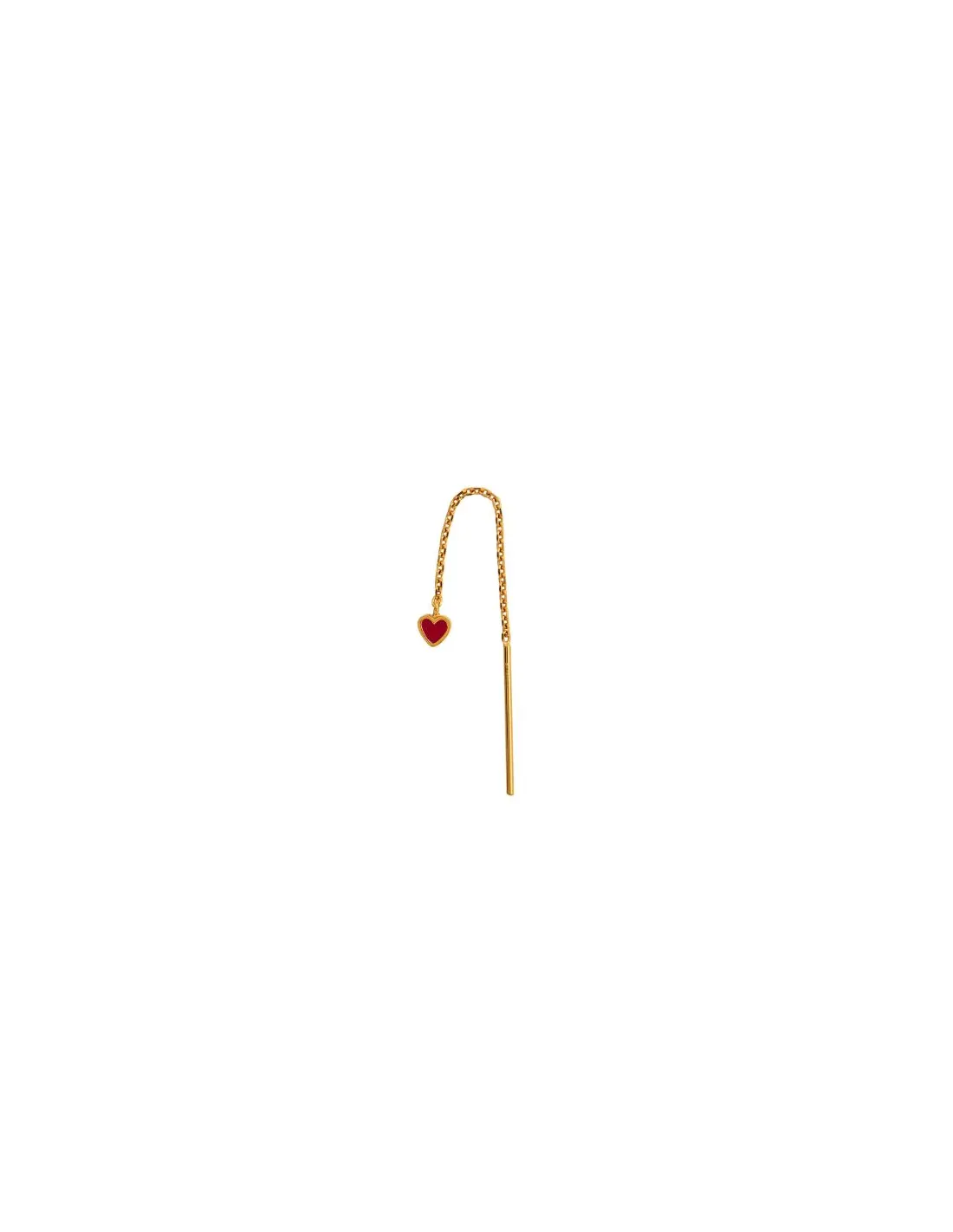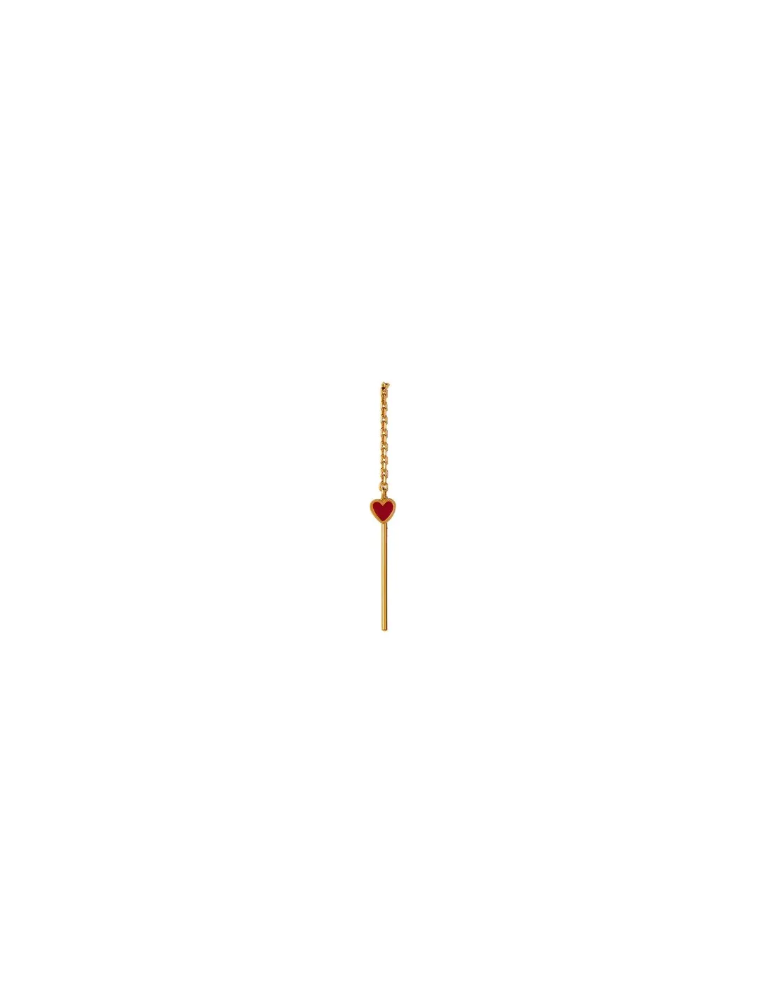 Denne ørering i forgyldt er det perfekt valg til din smykkesamling. Bordeaux er årets farve og med sit lette design er denne ørering med et bordeaux hjerte det ideelle valg. Hjertet hænger i en kæde, som gør øreringen helt diskret og let at bære. Tilføj et hint af coolness med et dansende hjerte eller slip kreativiteten løs og mix kædeøreringen med flere øreringe fra STINE A Jewelry for at skabe et trendy ear-mix.